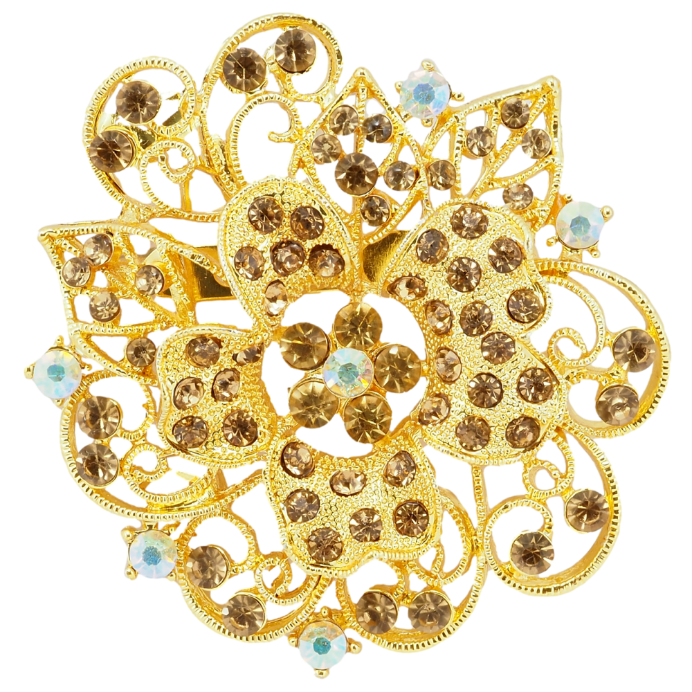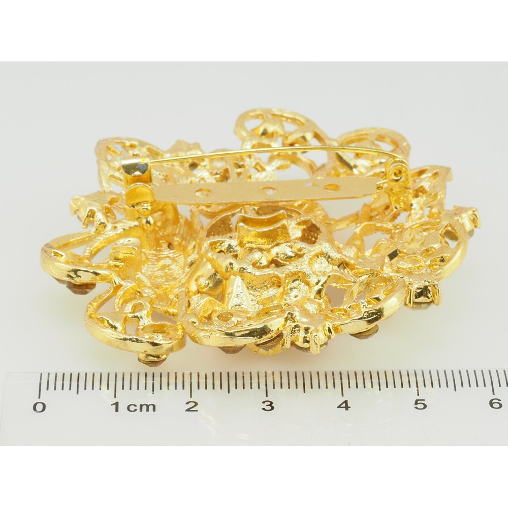 Брошка Квітка з коричневими стразами