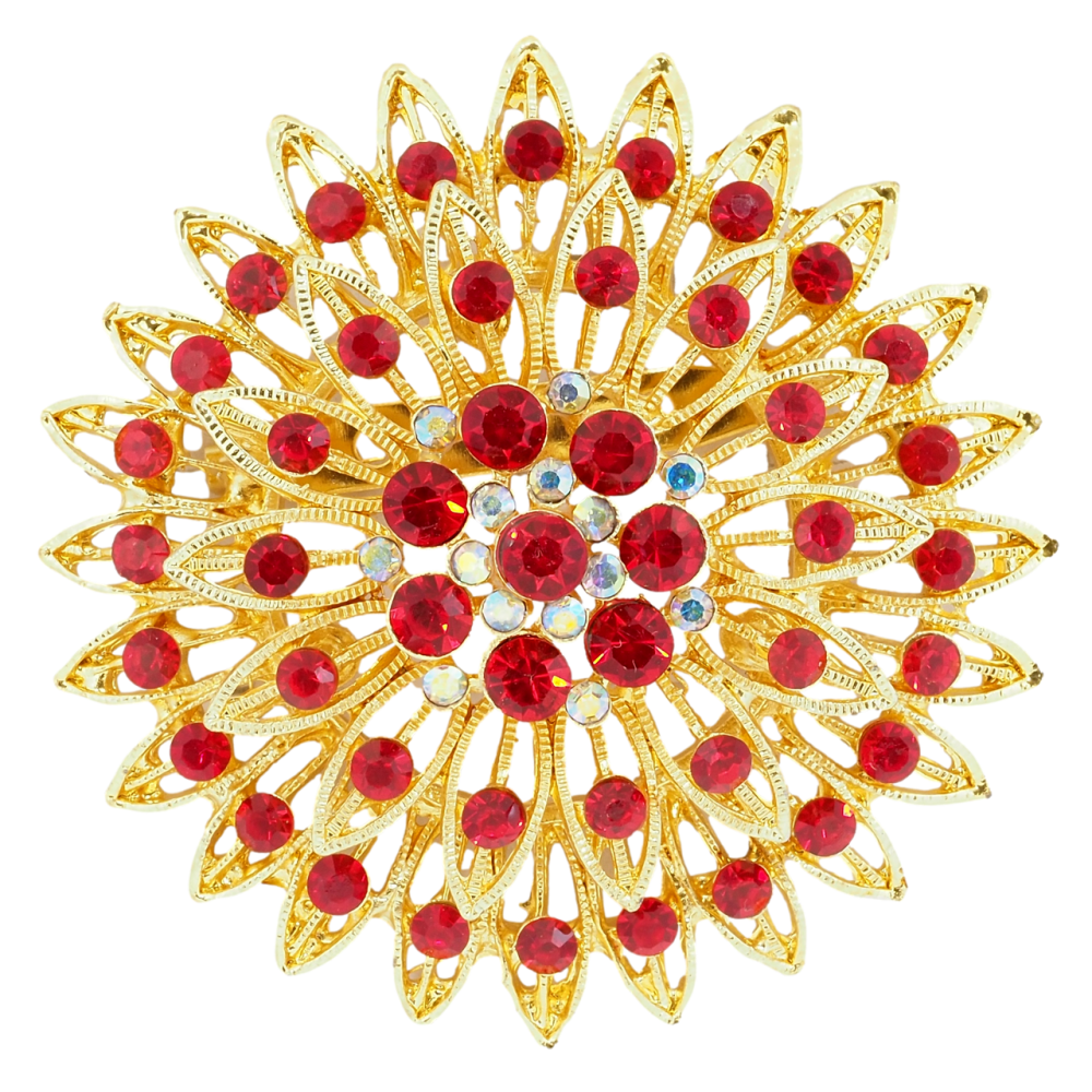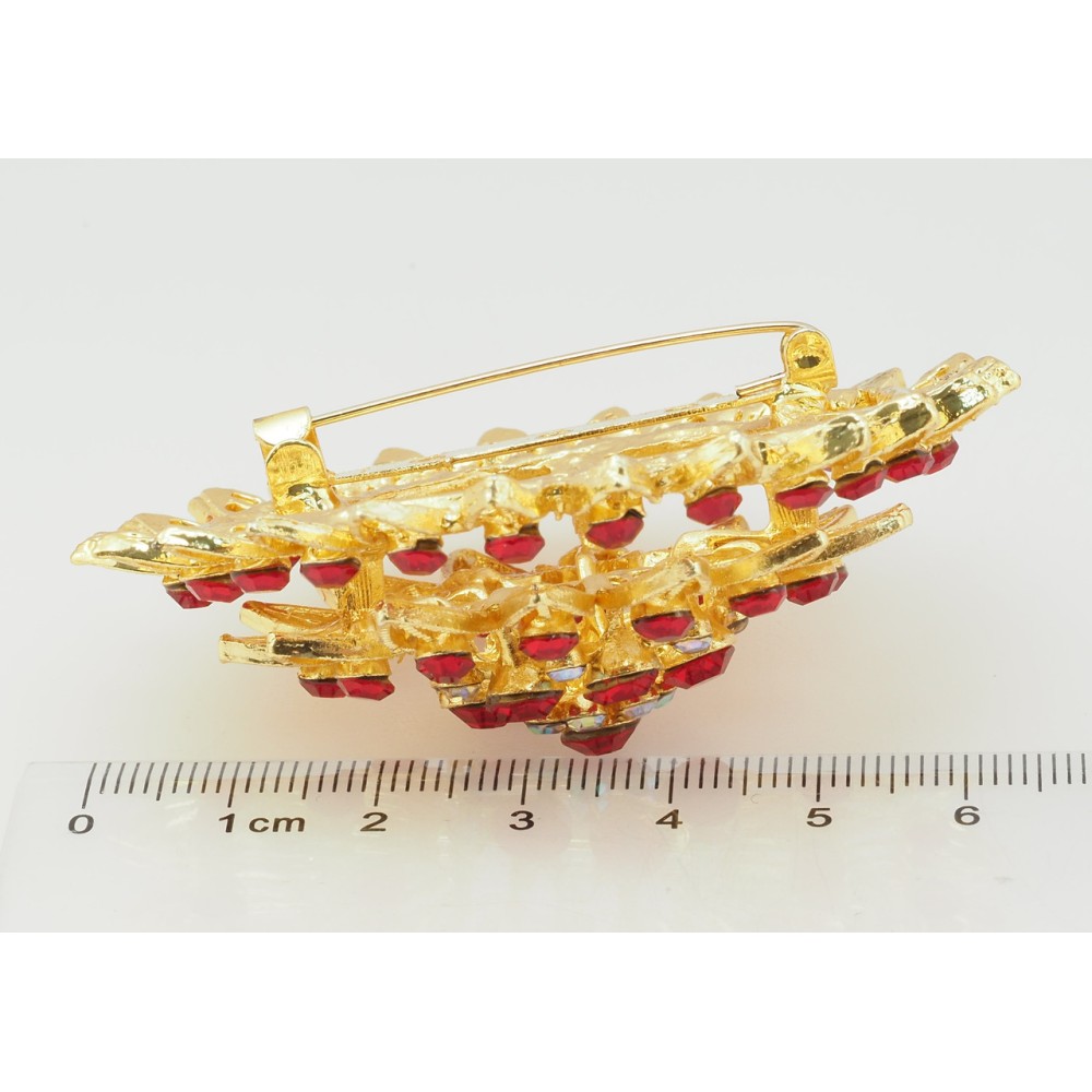 Брошка Квітка з червоними стразами