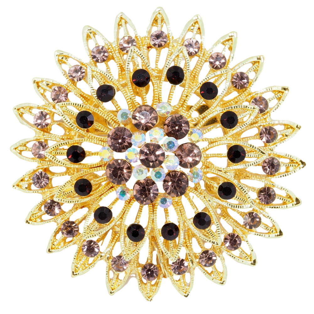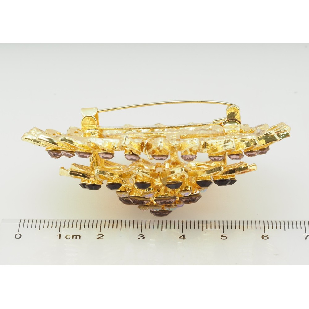 Брошка Квітка з бордовими стразами