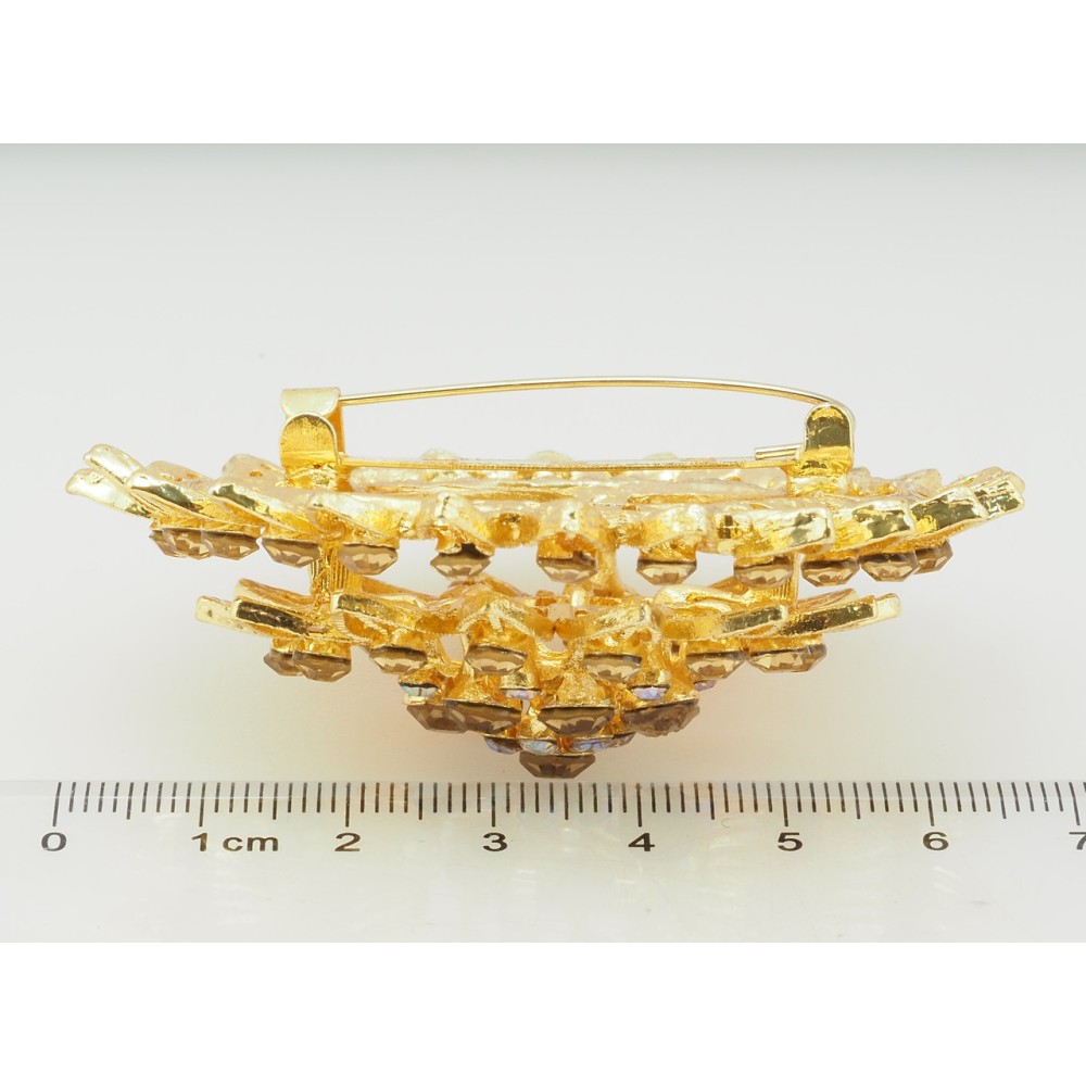 Брошка Квітка з золотистими стразами