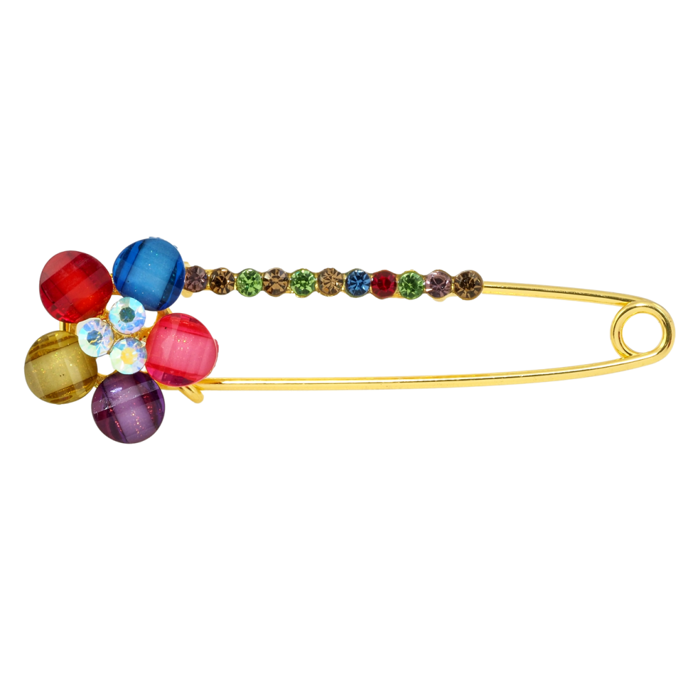 Брошка-шпилька Квітка з різнокольоровими стразами