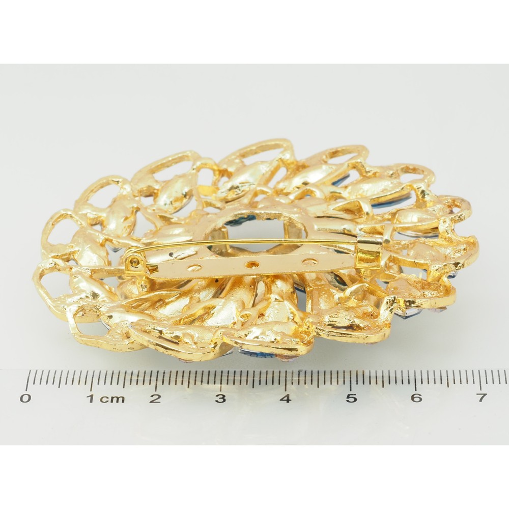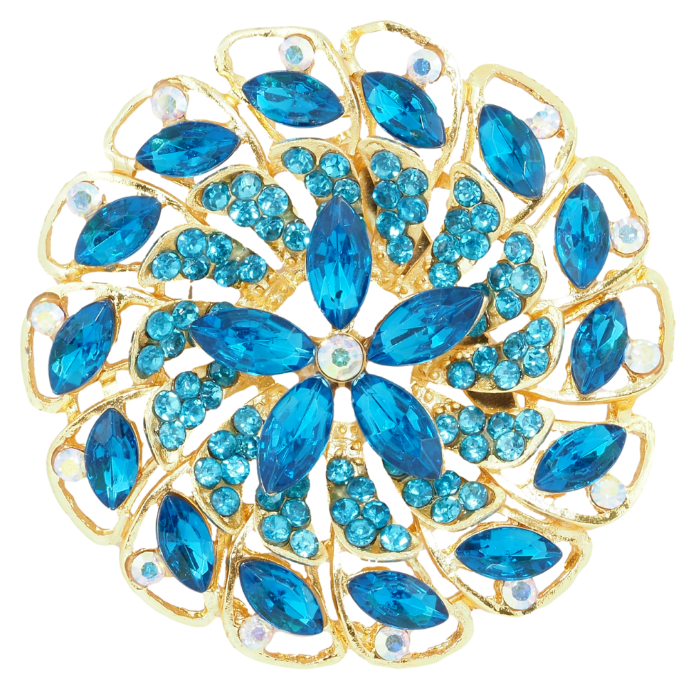 Брошка Квітка з бірюзовими стразами