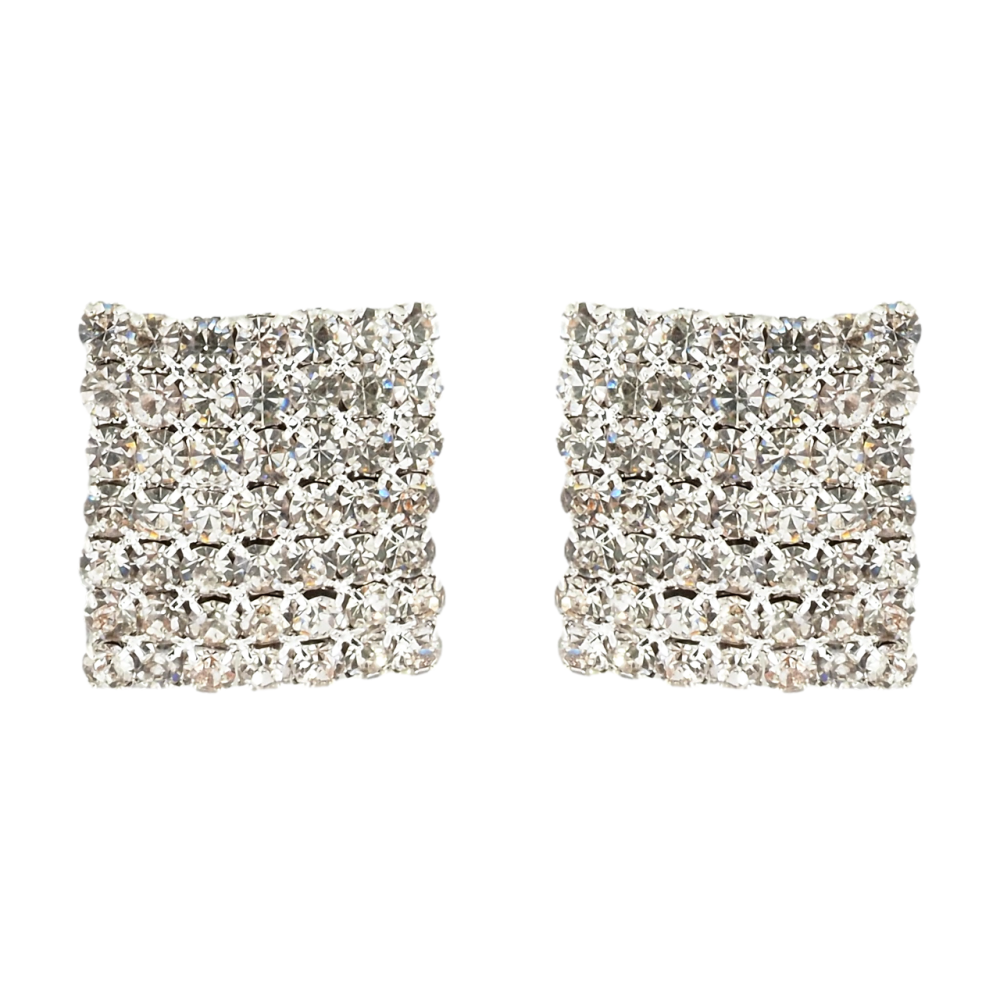 Сережки пусети Квадрати зі стразами 16х17мм