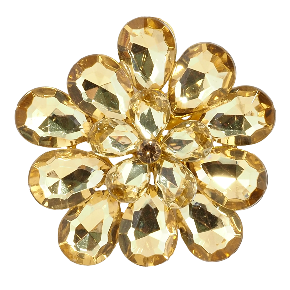 Брошка Квітка з золотистими кристалами