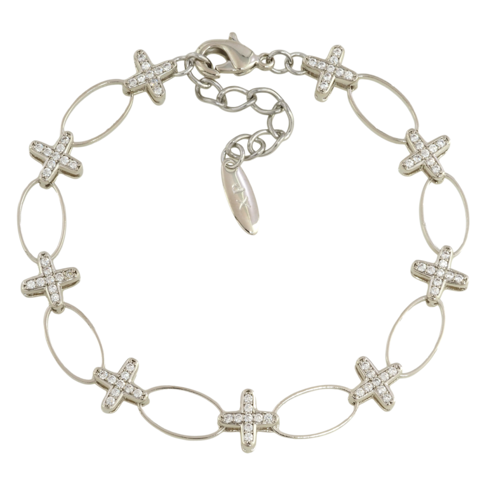 Браслет Xuping Родій Овальні ланки з хрестиками розмір із дод. ланцюжком 18-21 см х 7-8мм