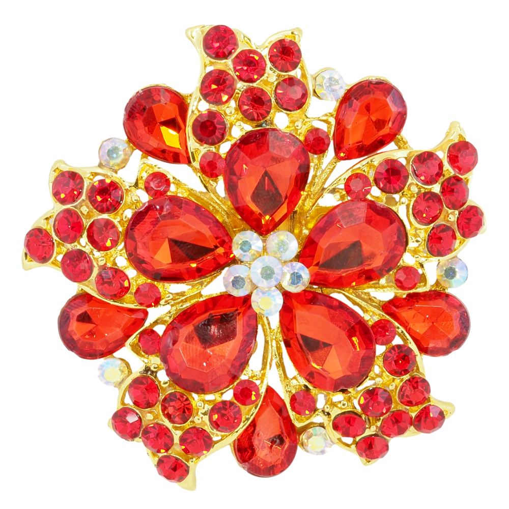 Брошка Квітка з червоних страз