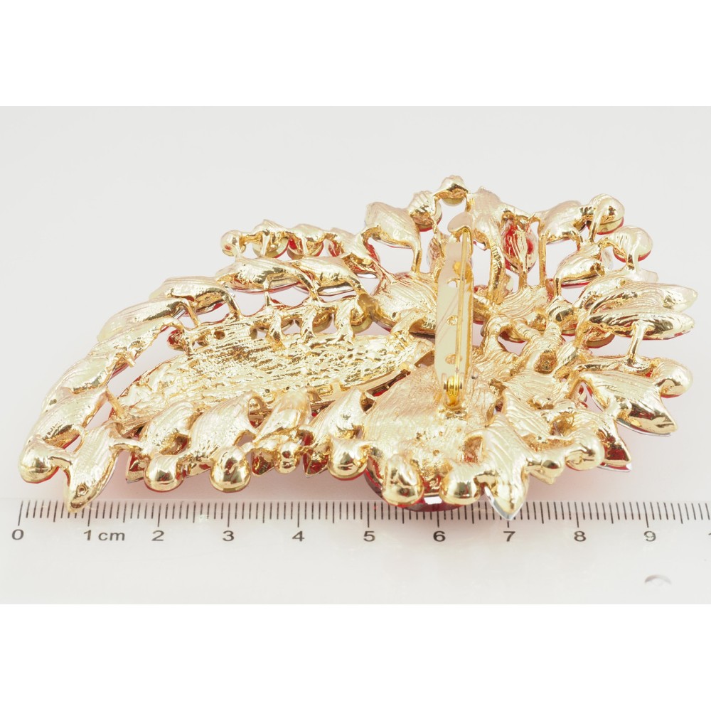 Брошка Велика композиція з червоними стразами