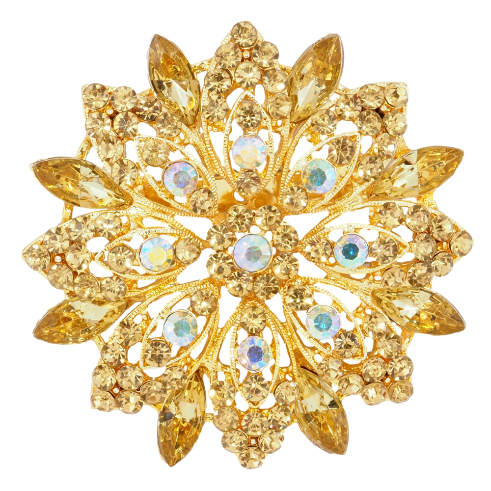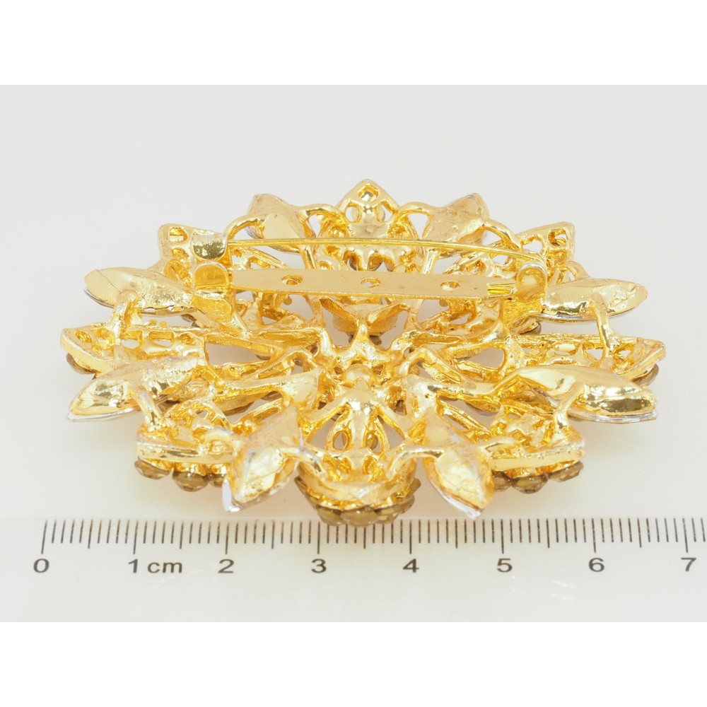 Брошка Квітка з золотистими стразами