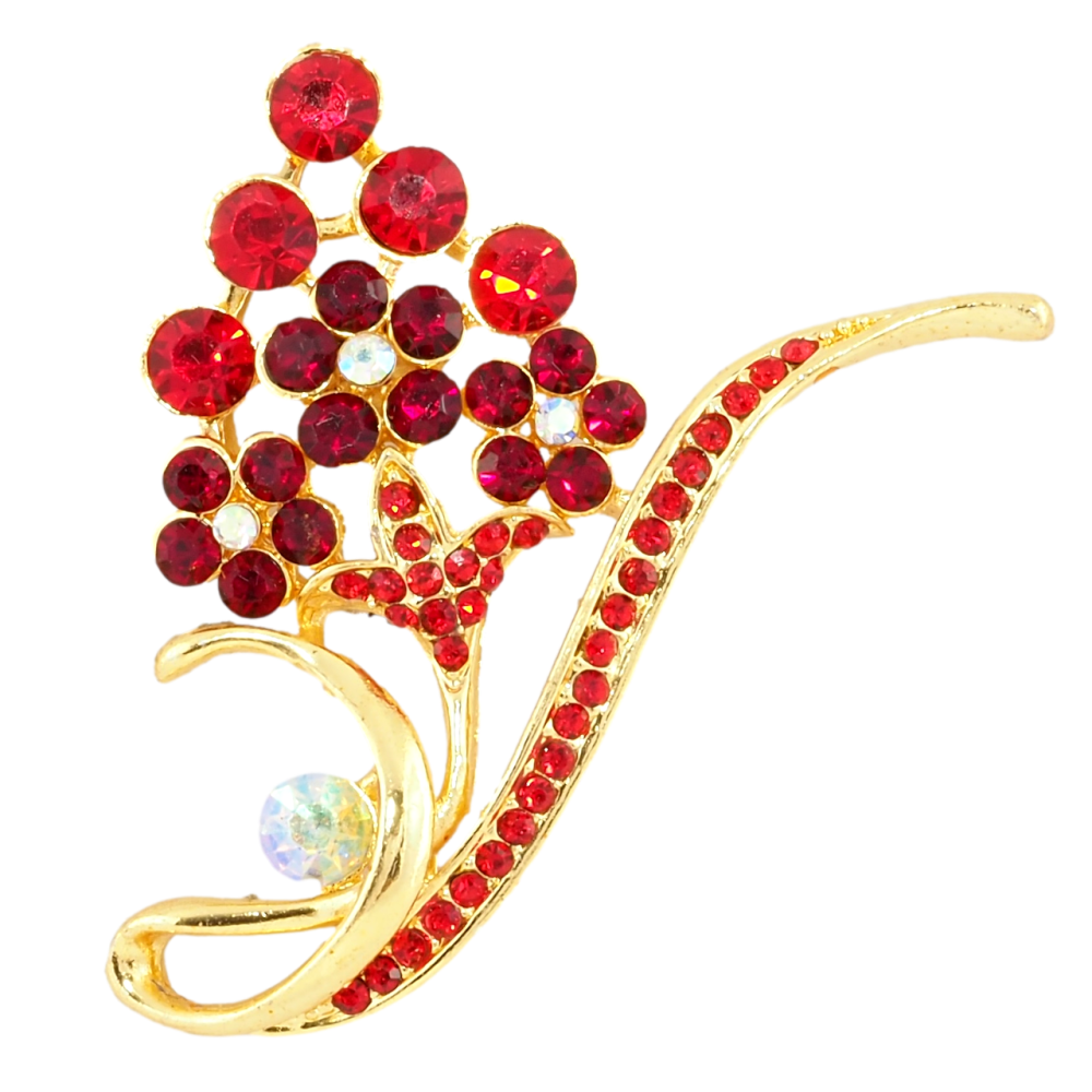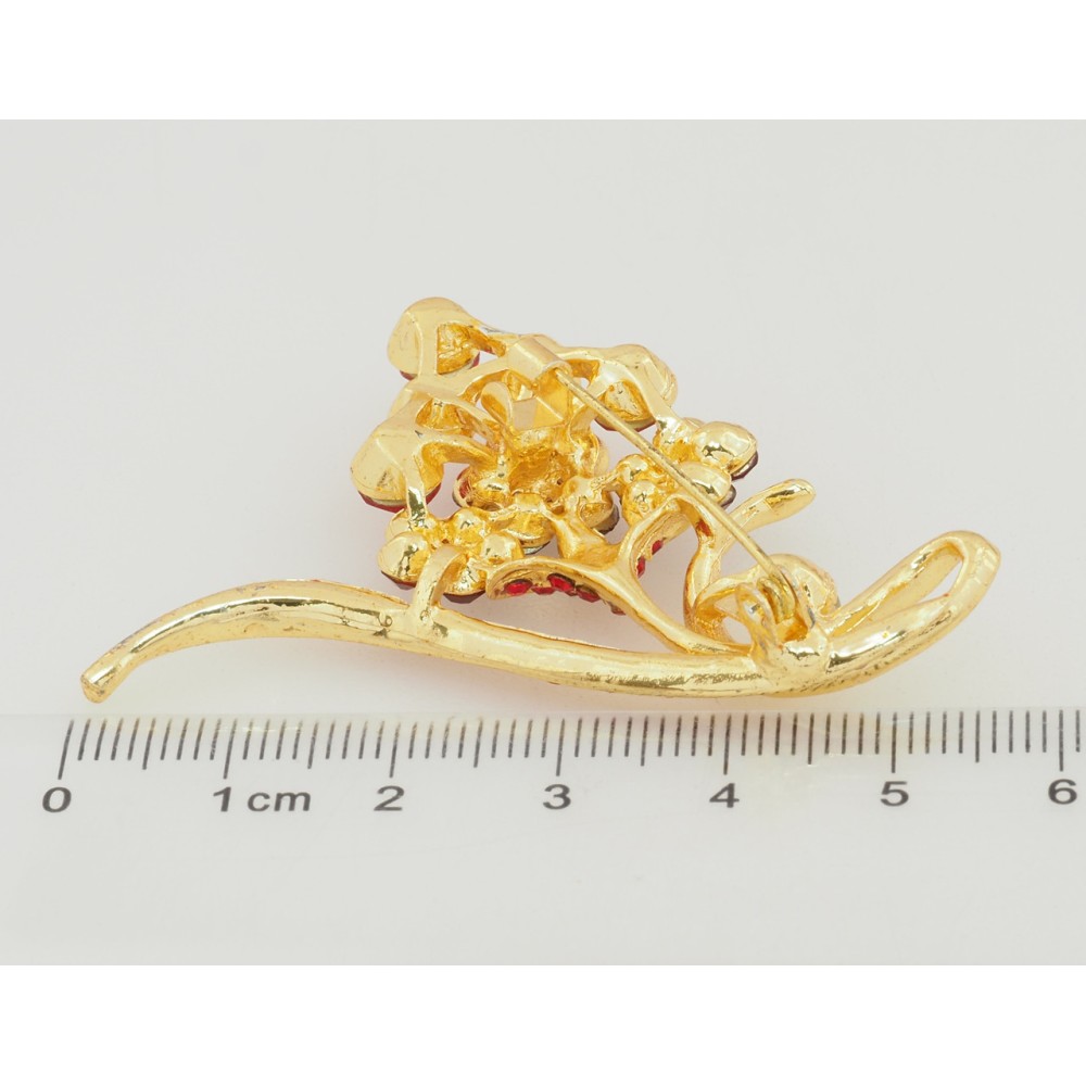 Брошка Квіткова композиція з червоними стразами