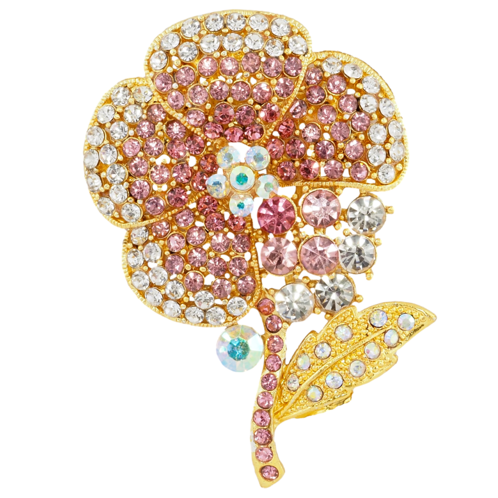 Брошка Квітка з рожевими стразами