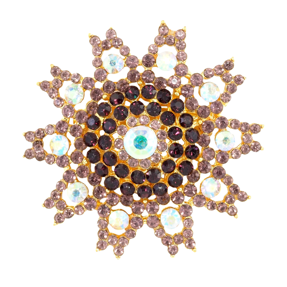Брошка Сніжинка з бордовими стразами