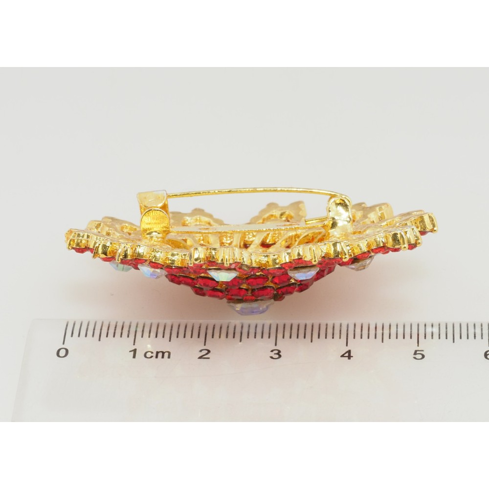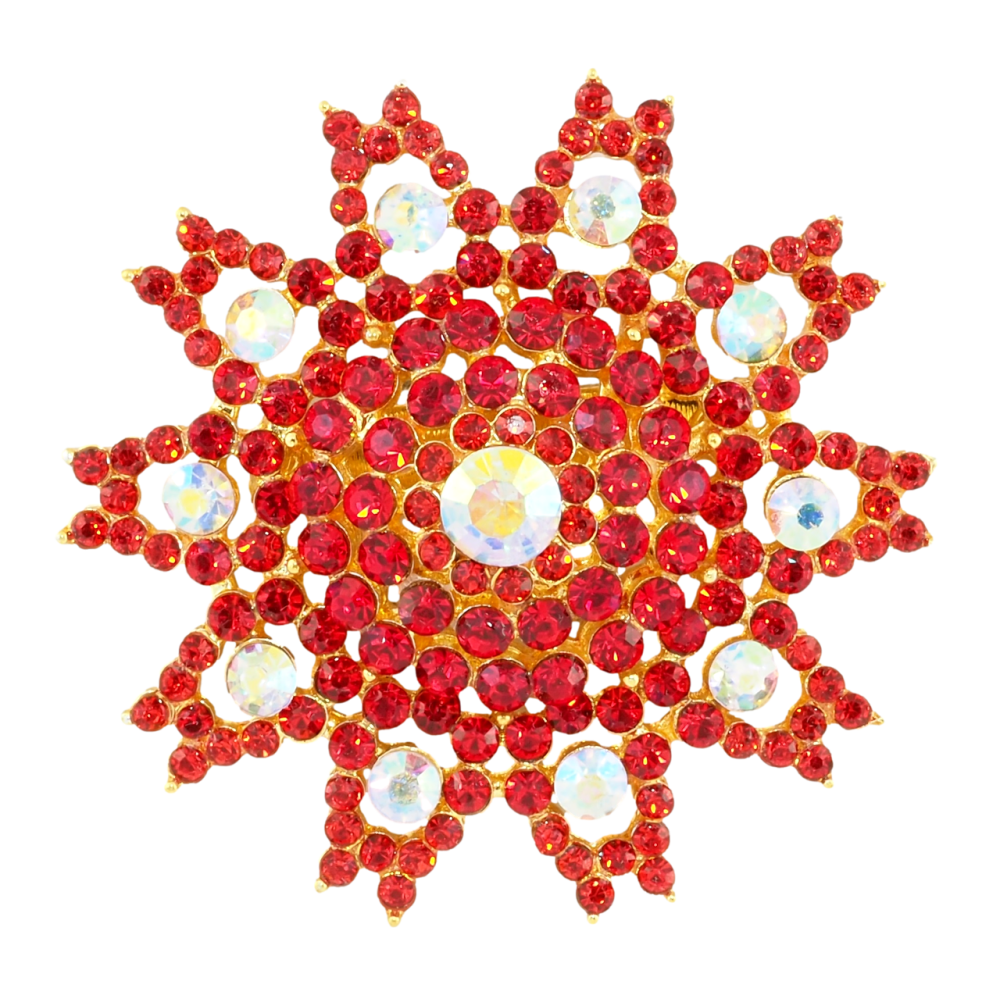 Брошка Сніжинка з червоними стразами