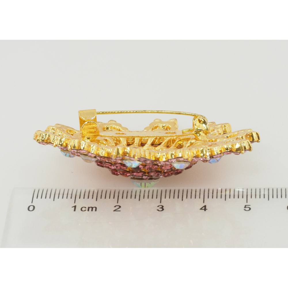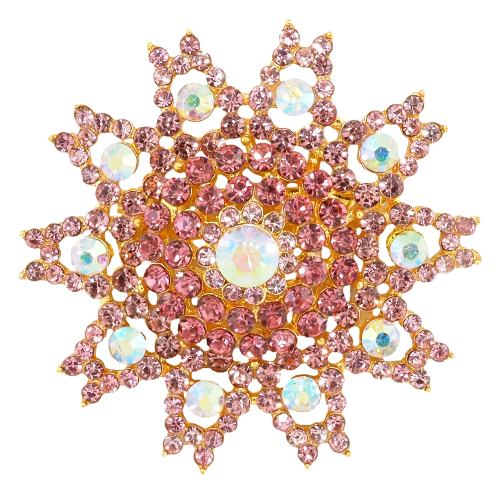 Брошка Сніжинка з рожевими стразами
