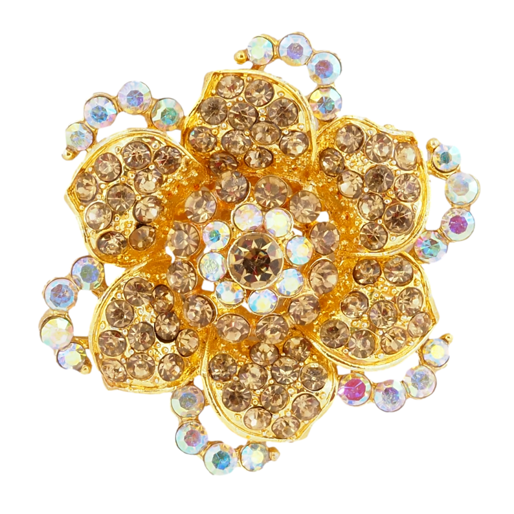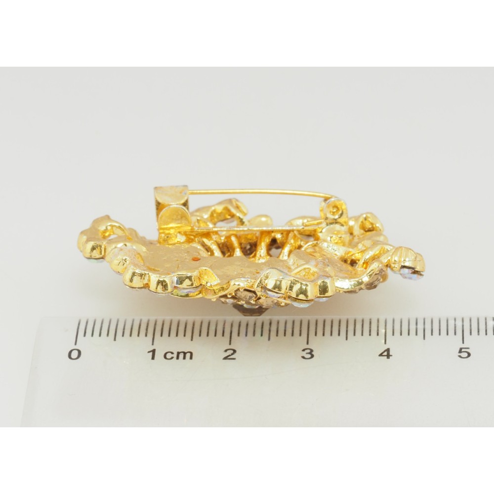 Брошка Квітка з золтистими стразами