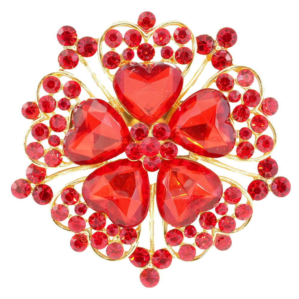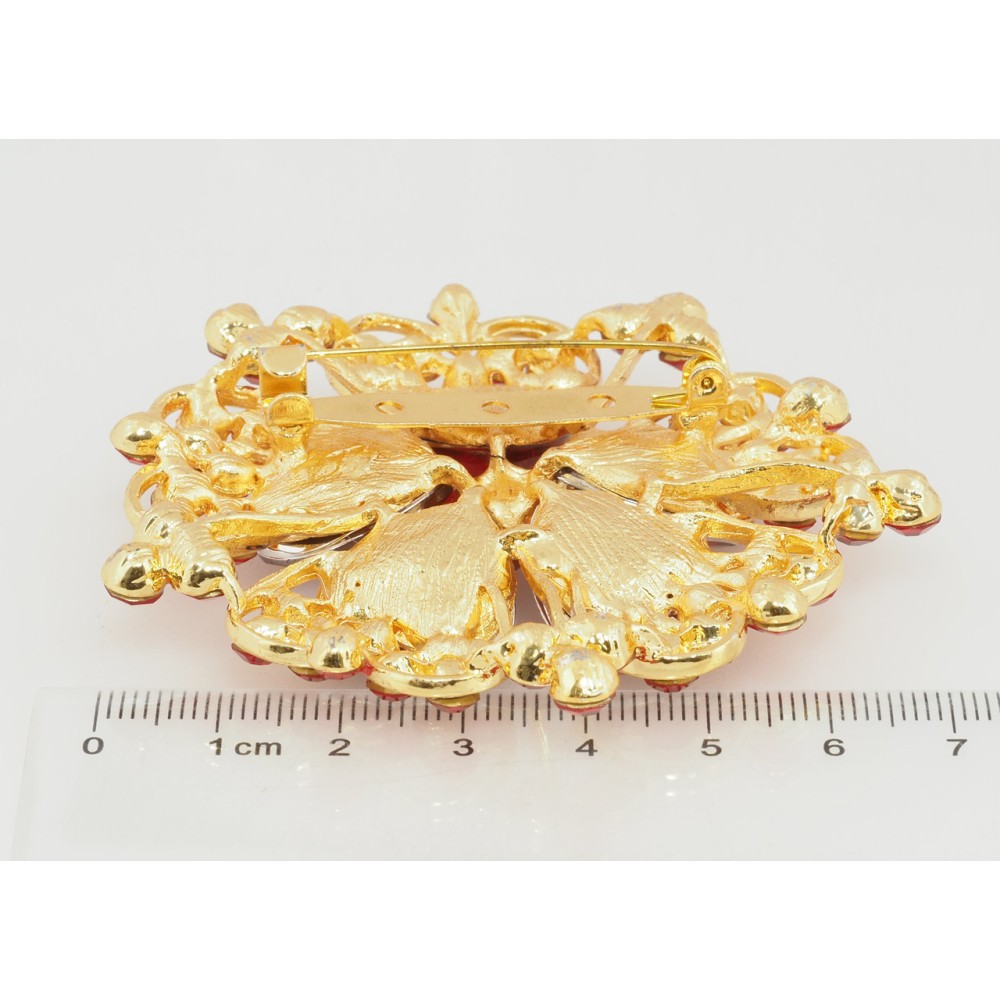 Брошка Квітка з червоними стразами