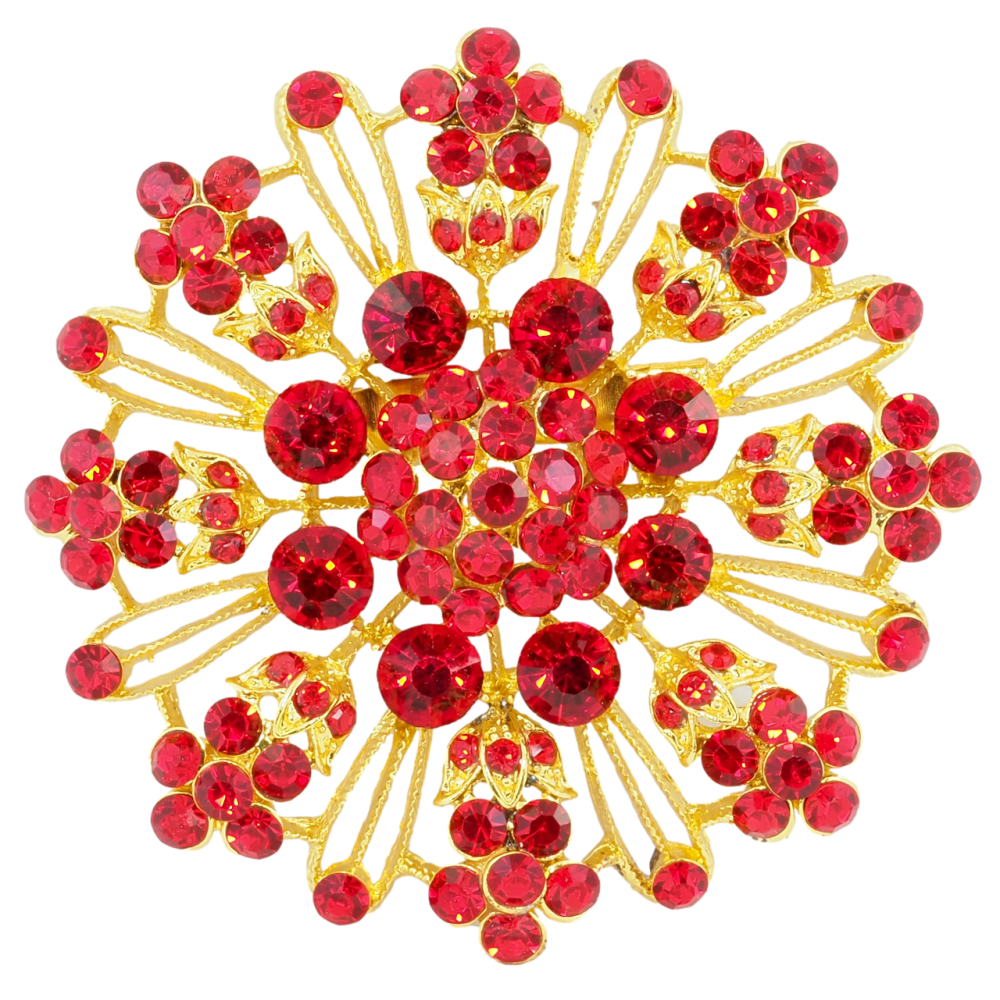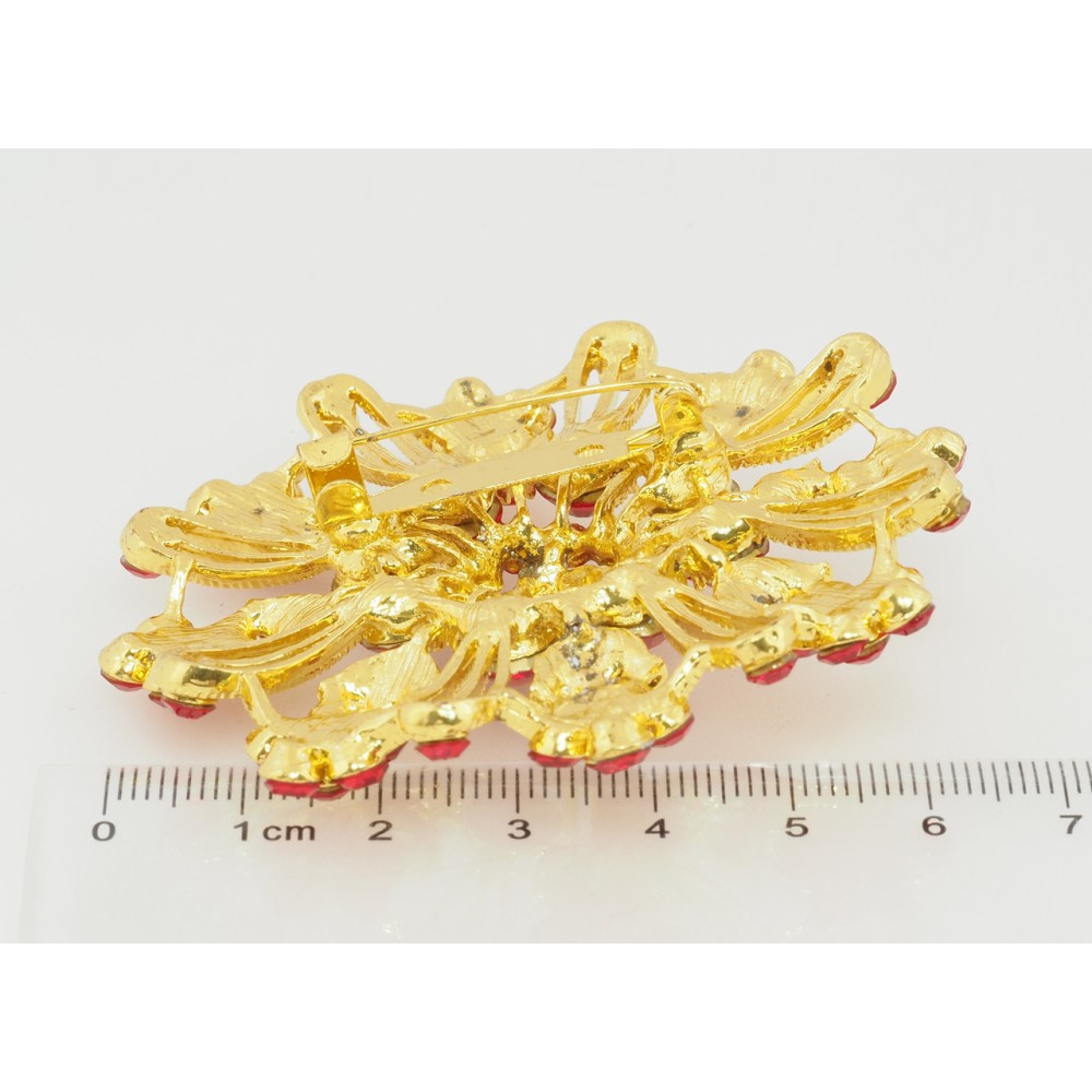 Брошка Квітка з червоними стразами