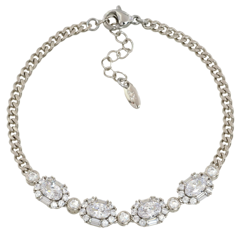 Браслет Xuping Родій Ланцюжок з кришталевою вставкою довжина з дод. ланцюжком 17-20см х 3мм