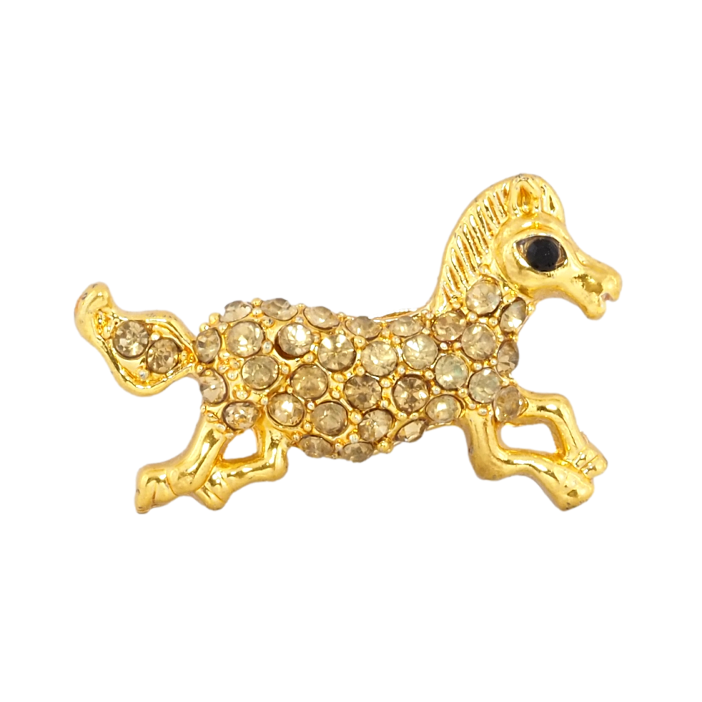 Брошка Кінь з золотистими стразами