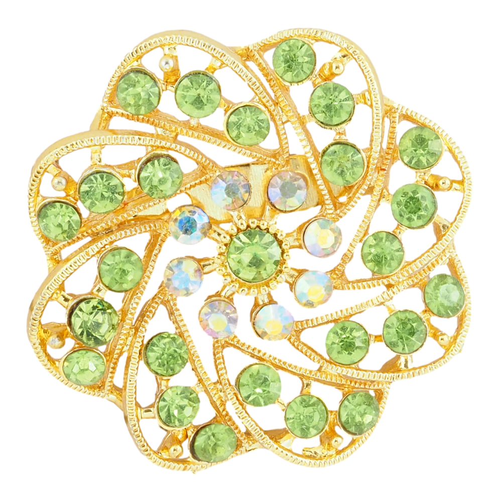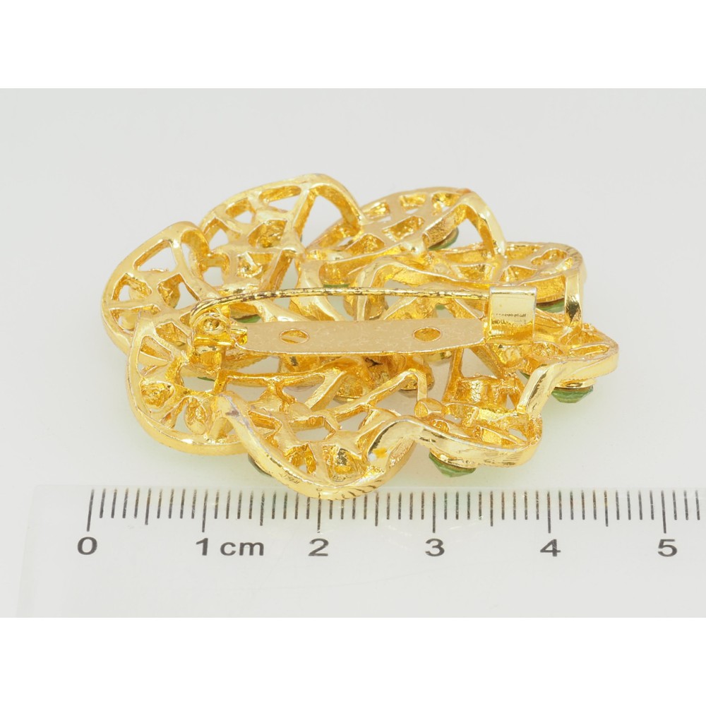 Брошка Квітка з зеленими стразами