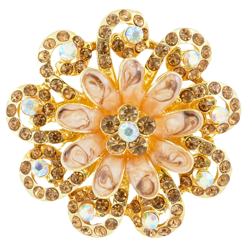 Брошка Квітка з золотистими стразами та емаллю
