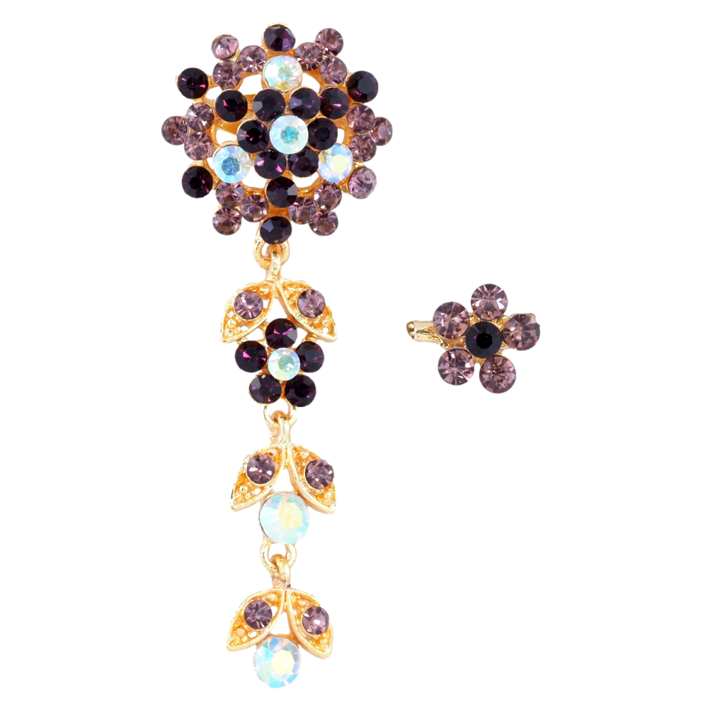 Брошки Дві квіточки з бордовими стразами