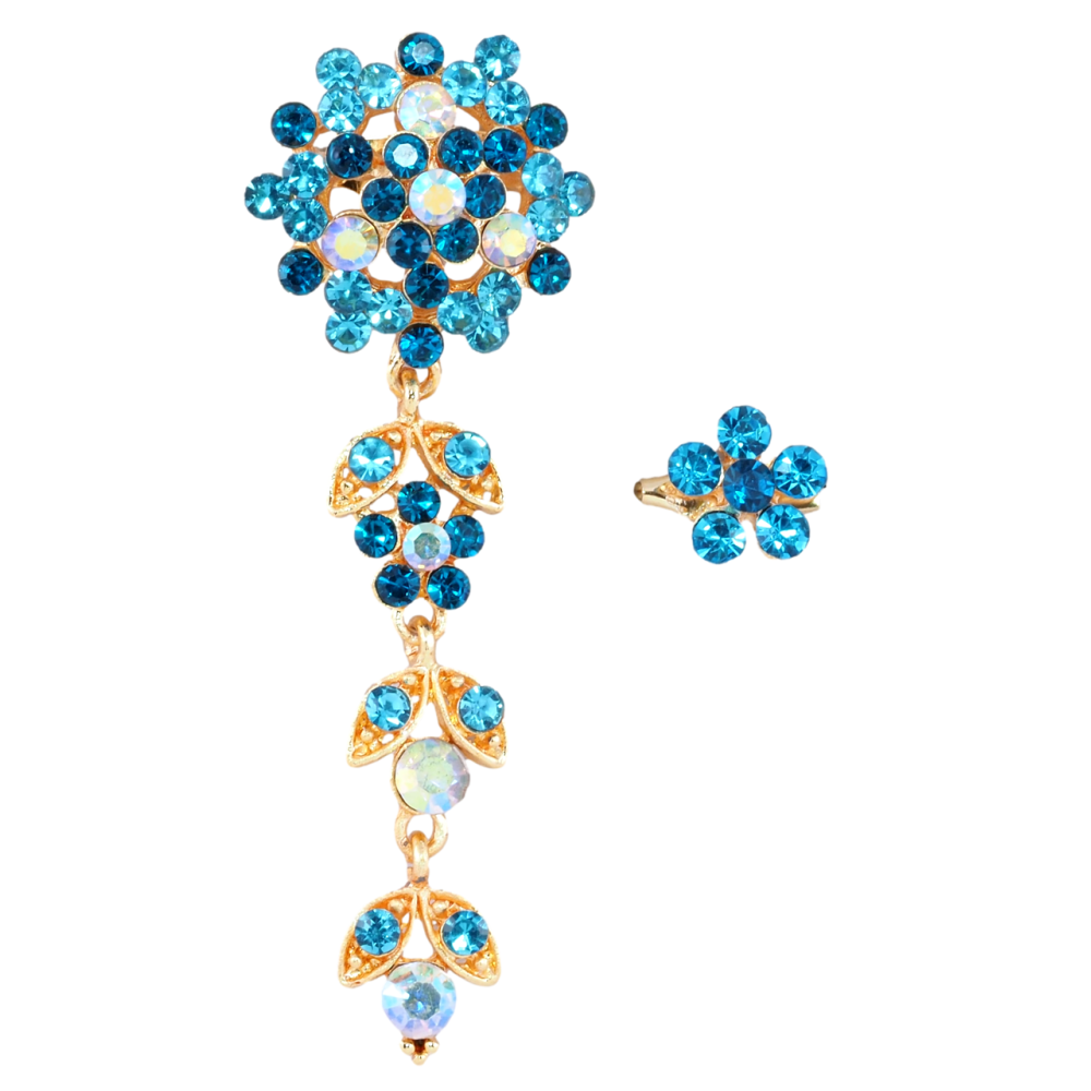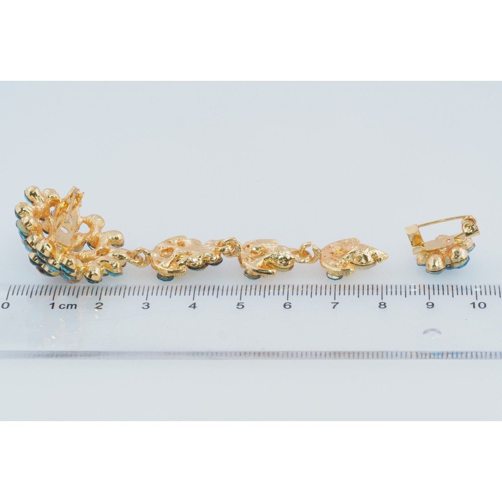 Брошки Дві квіточки з бірюзовими стразами