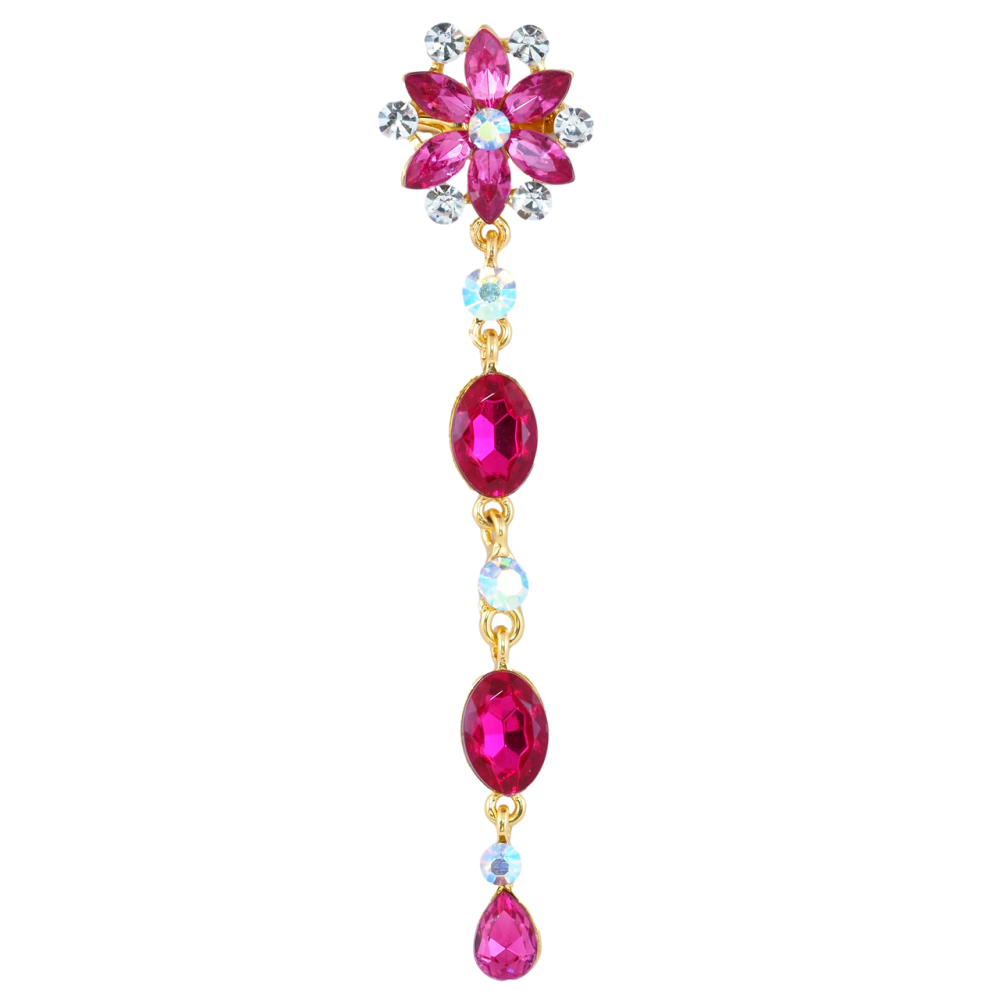 Брошка Квіткова підвіска з рожевими стразами