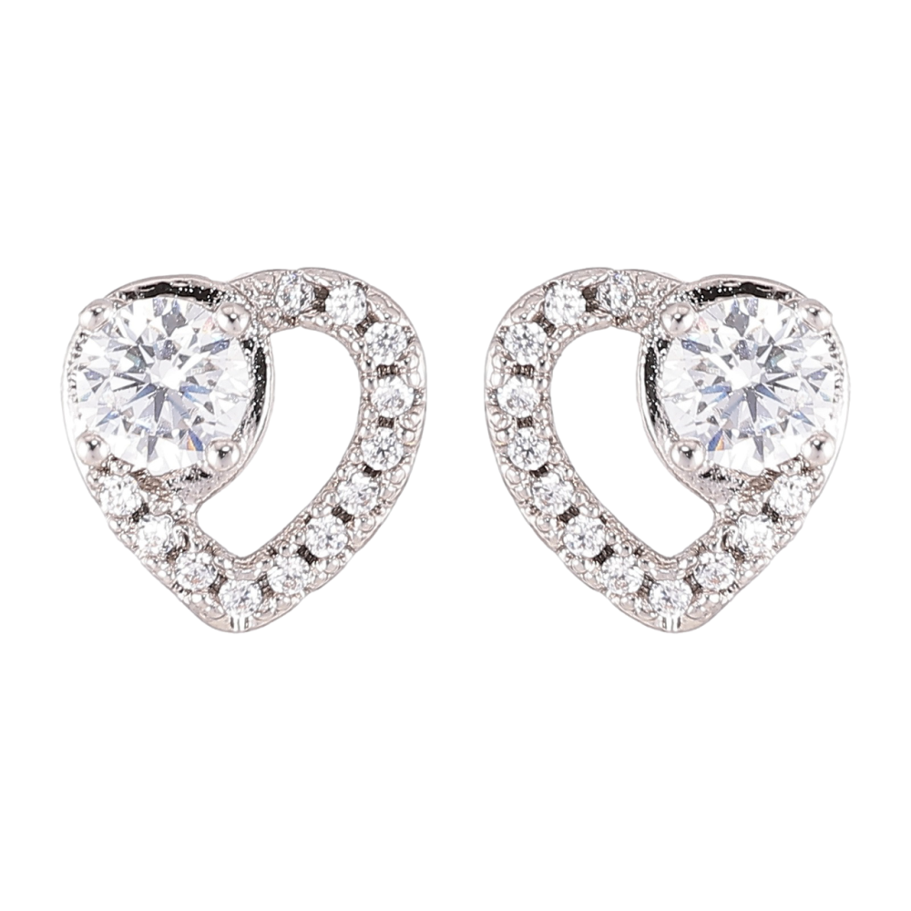 Сережки Xuping Родій пусети «Сердечка з цирконієм»