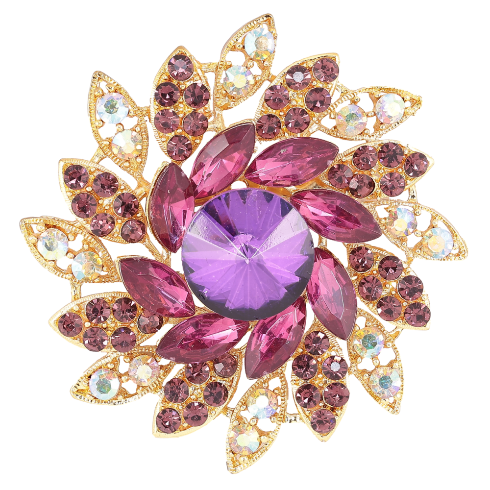 Брошка «Квітка з бордово-фіолетовими стразами»
