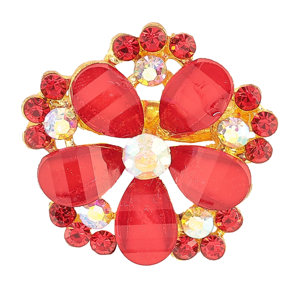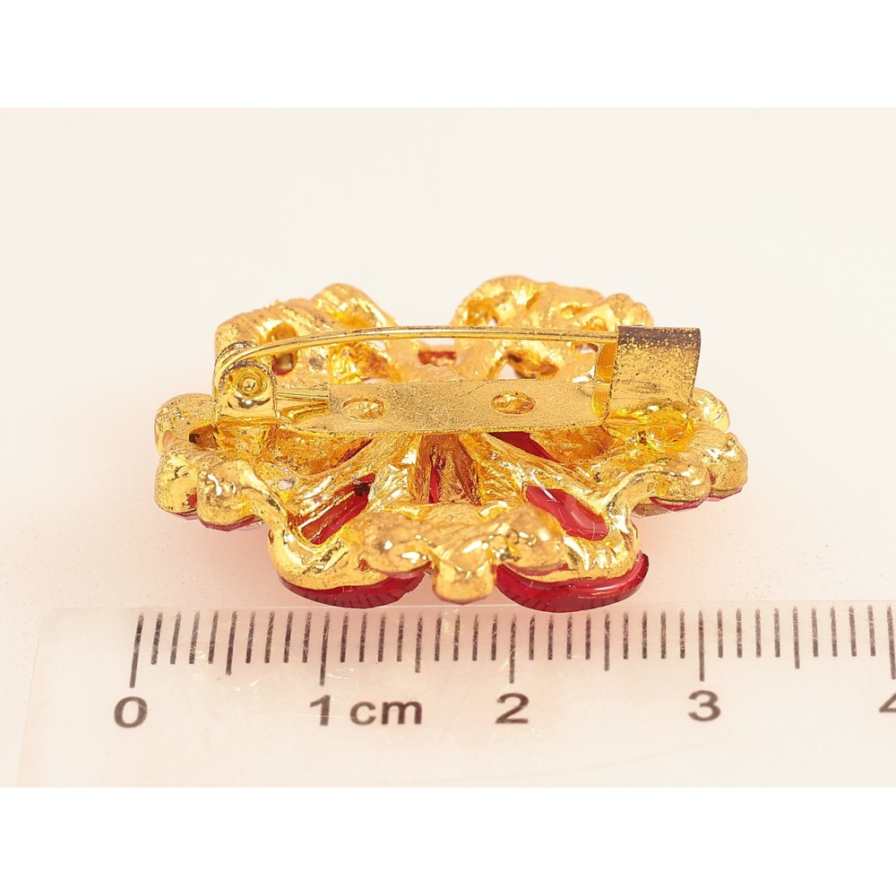 Брошка «Квітка з червоними стразами»