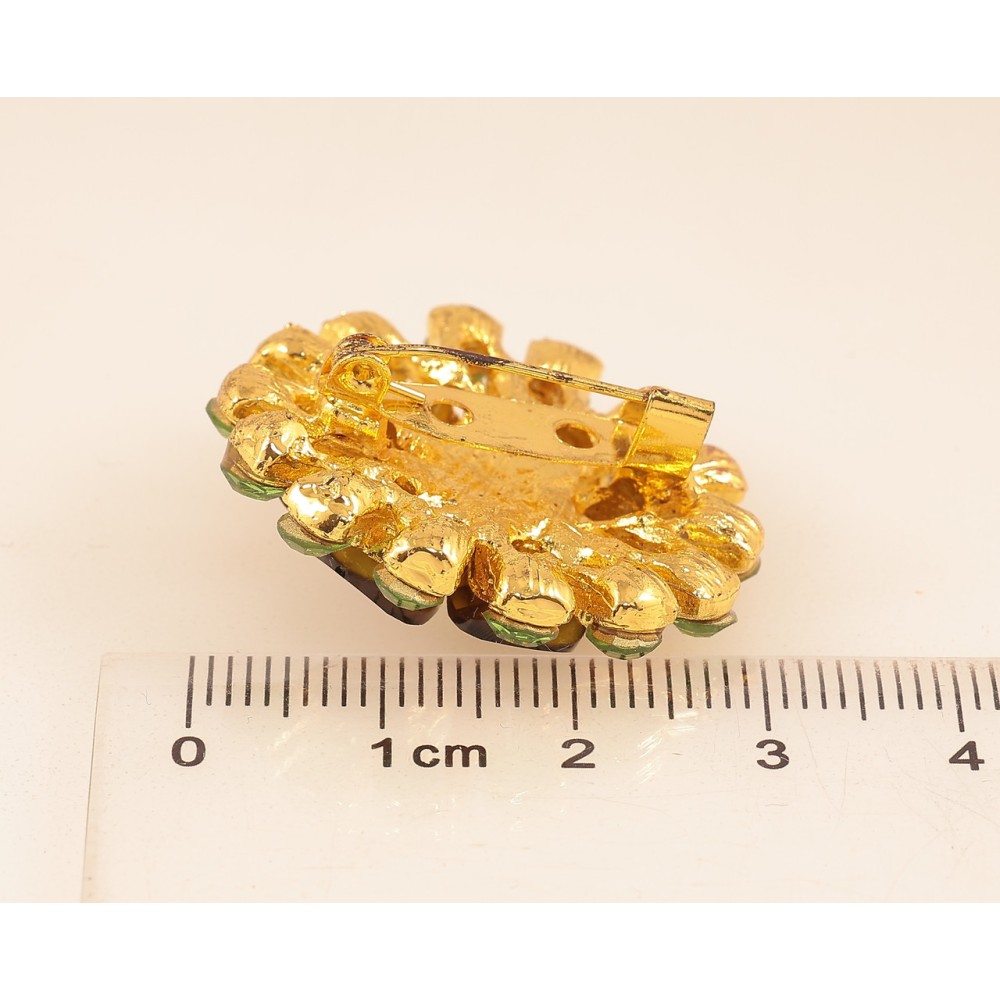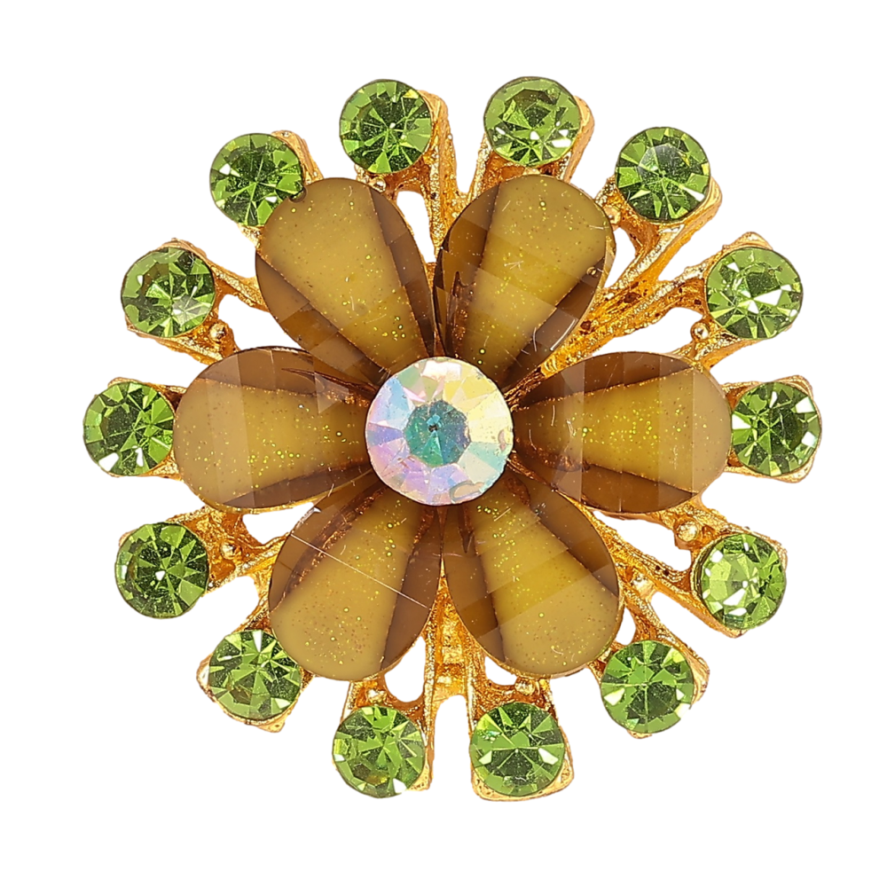 Брошка «Квітка з зеленими стразами»