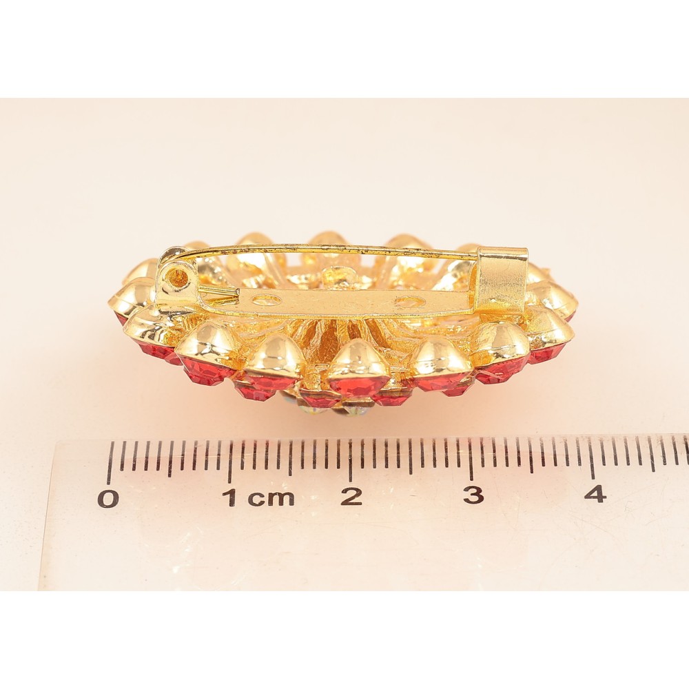 Брошка «Квітка з червоними стразами»