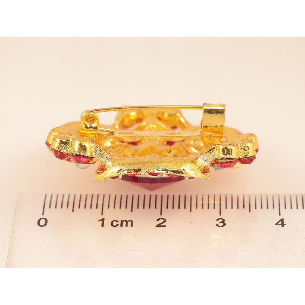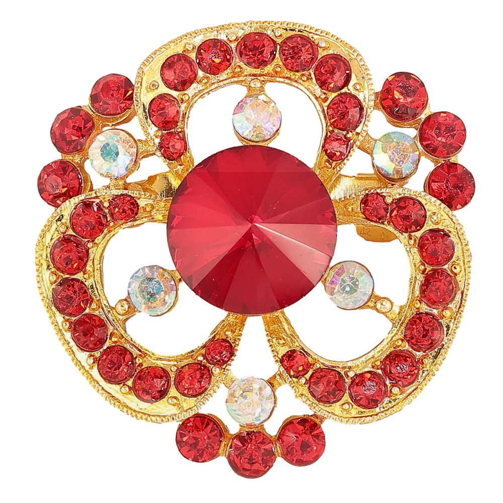 Брошка «Квітка з червоними стразами»