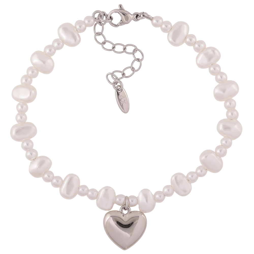 Браслет Xuping Родій «Перлинні намистини з сердечком» розмір з доп. ланцюжком 17-21см х 3-7мм