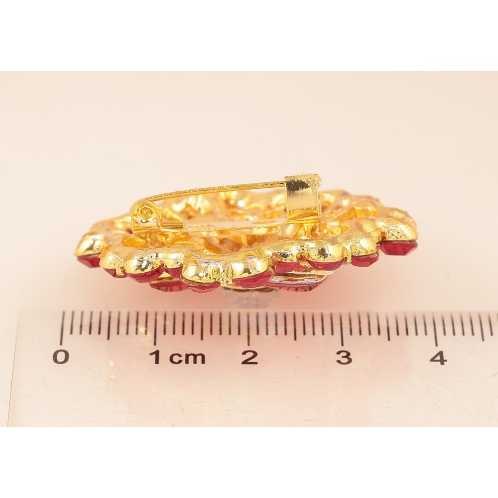 Брошка «Квітка з червоними стразами»