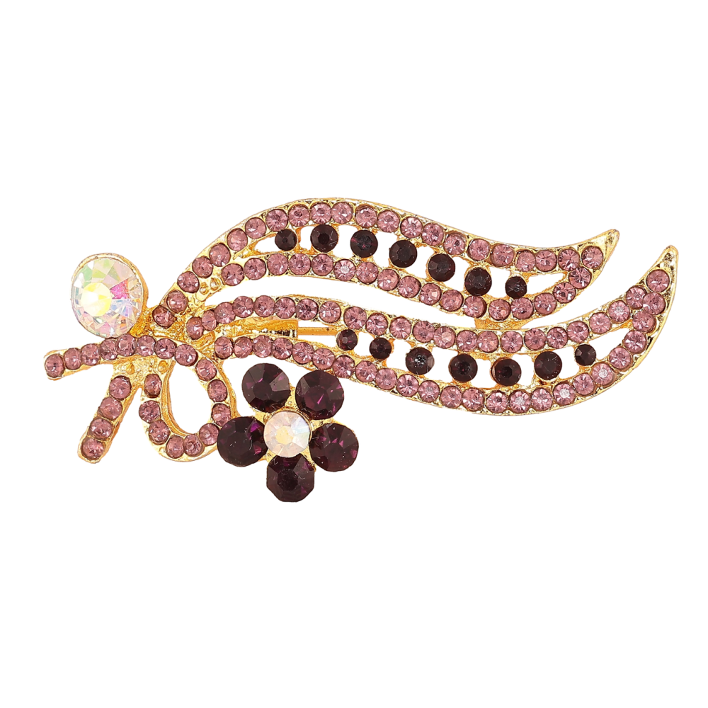 Брошка «Гілочка з бордовими стразами»