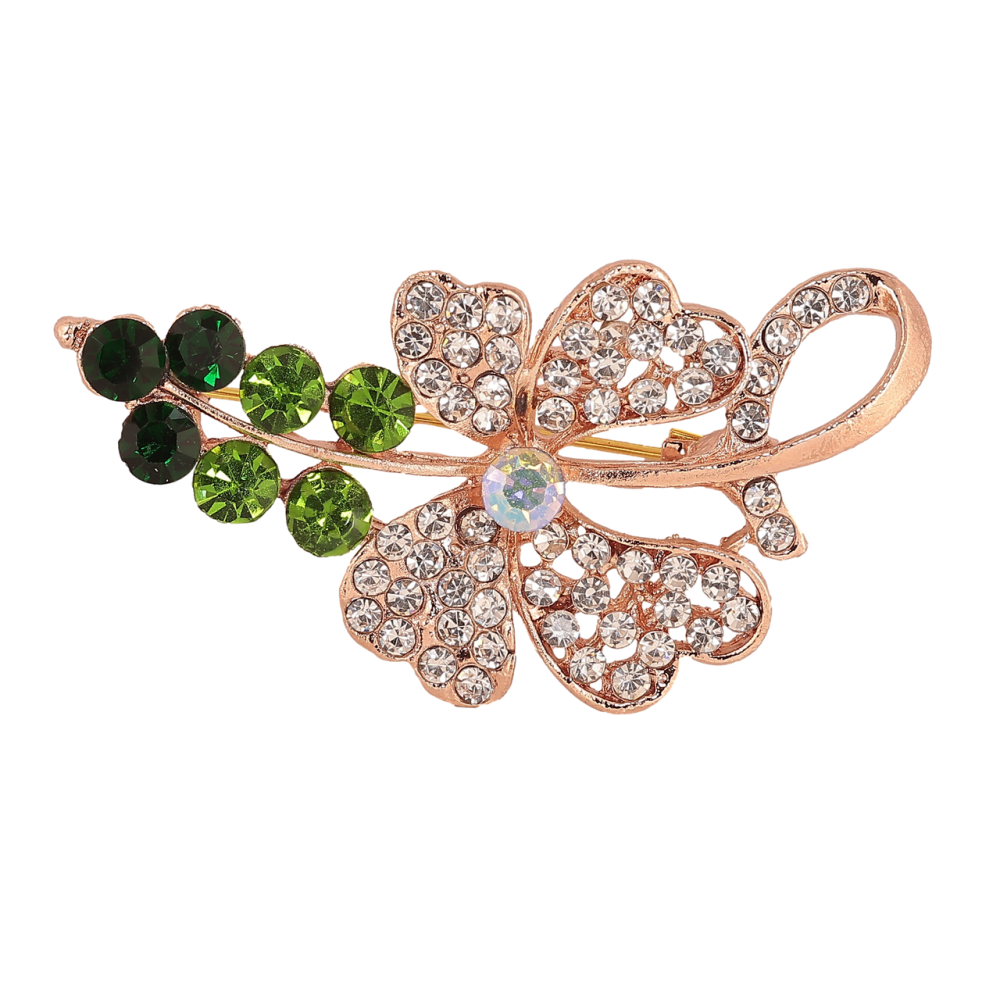 Брошка Квітка з зеленими стразами