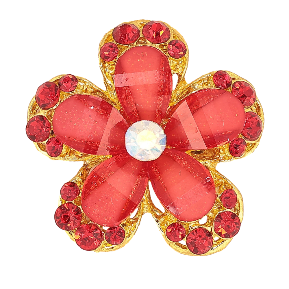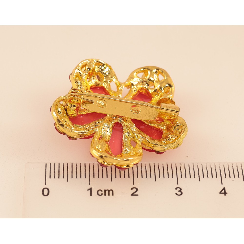 Брошка Квітка з червоними стразами