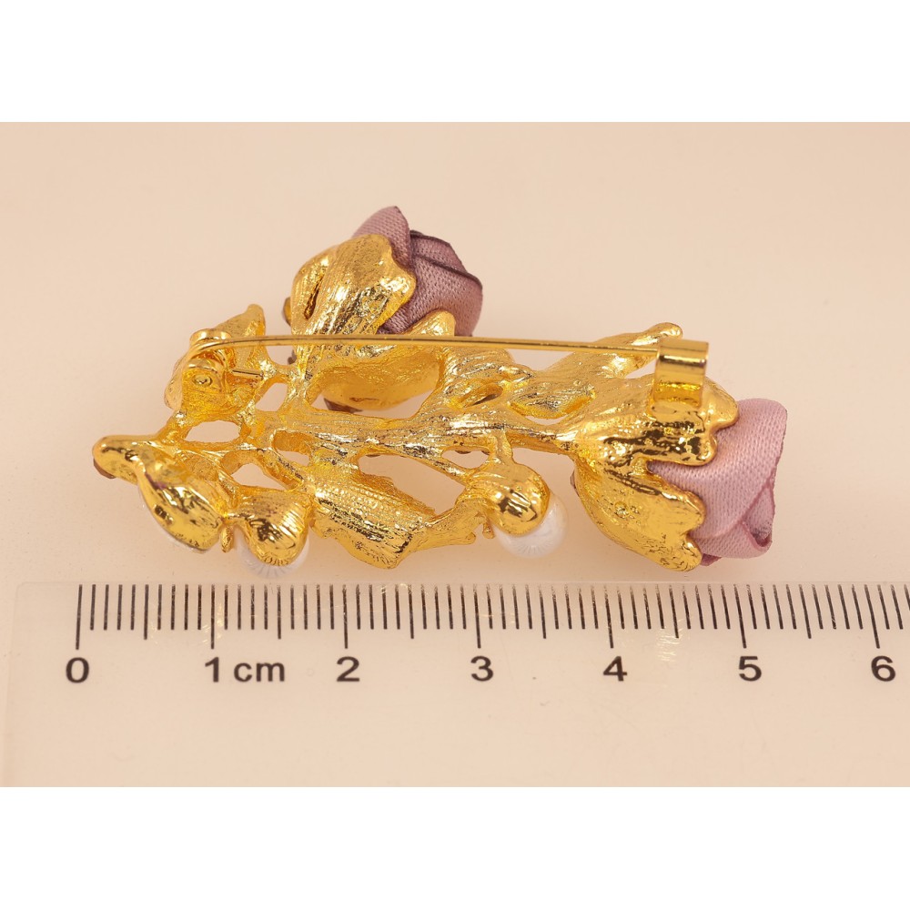 Брошка Рожево-бежеві квіточки зі стразами