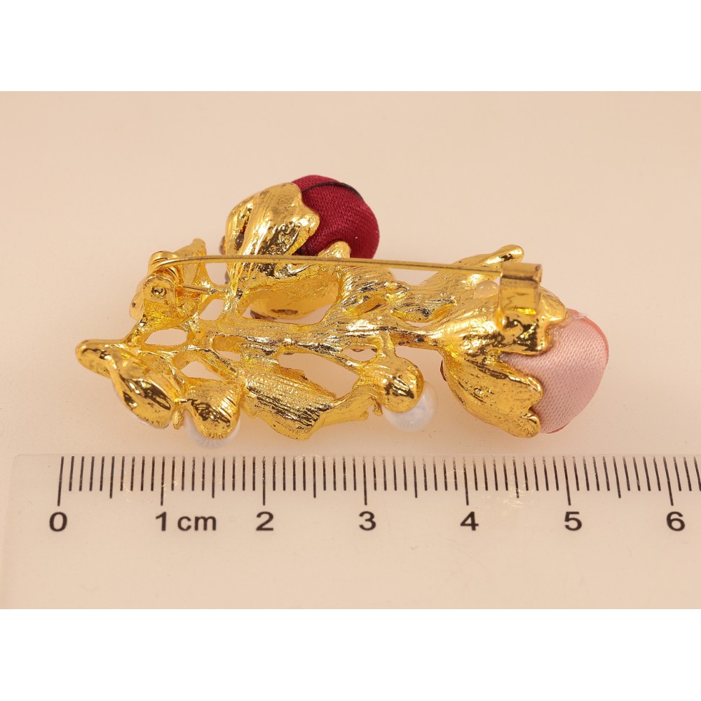 Брошка Червоно-рожеві квіточки зі стразами