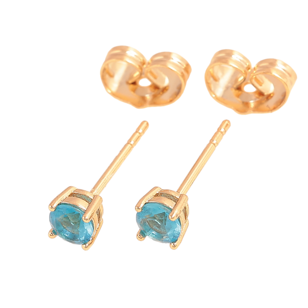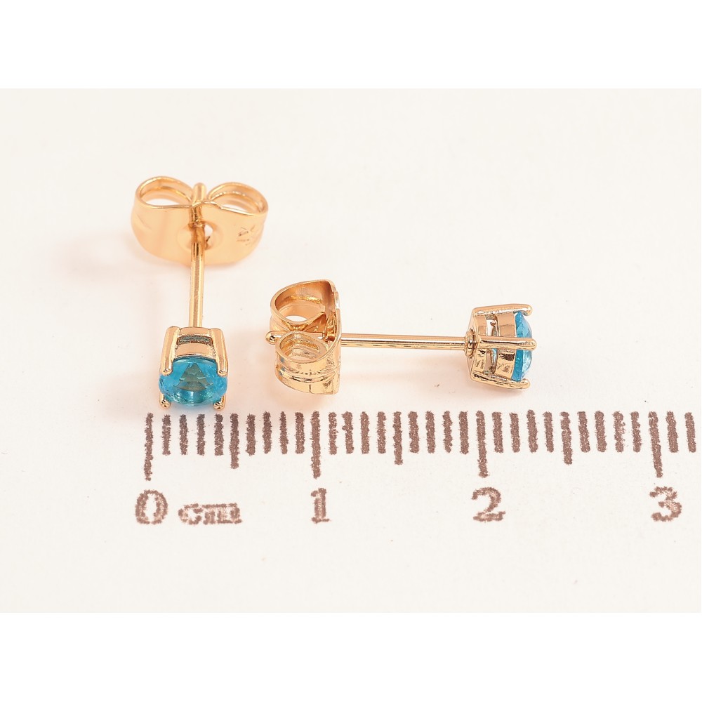 Сережки Xuping колір позолота 18К пусети блакитні кристали в 4-х крапановій оправі ø 4мм