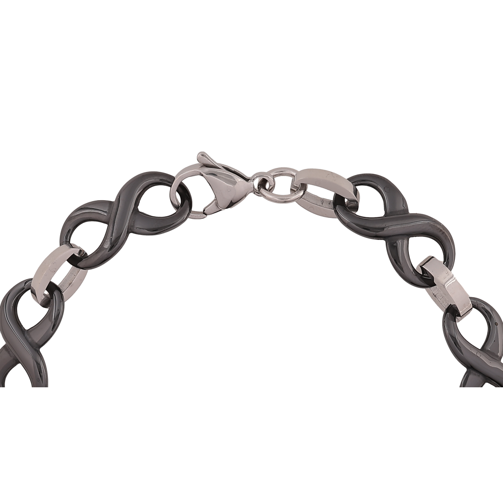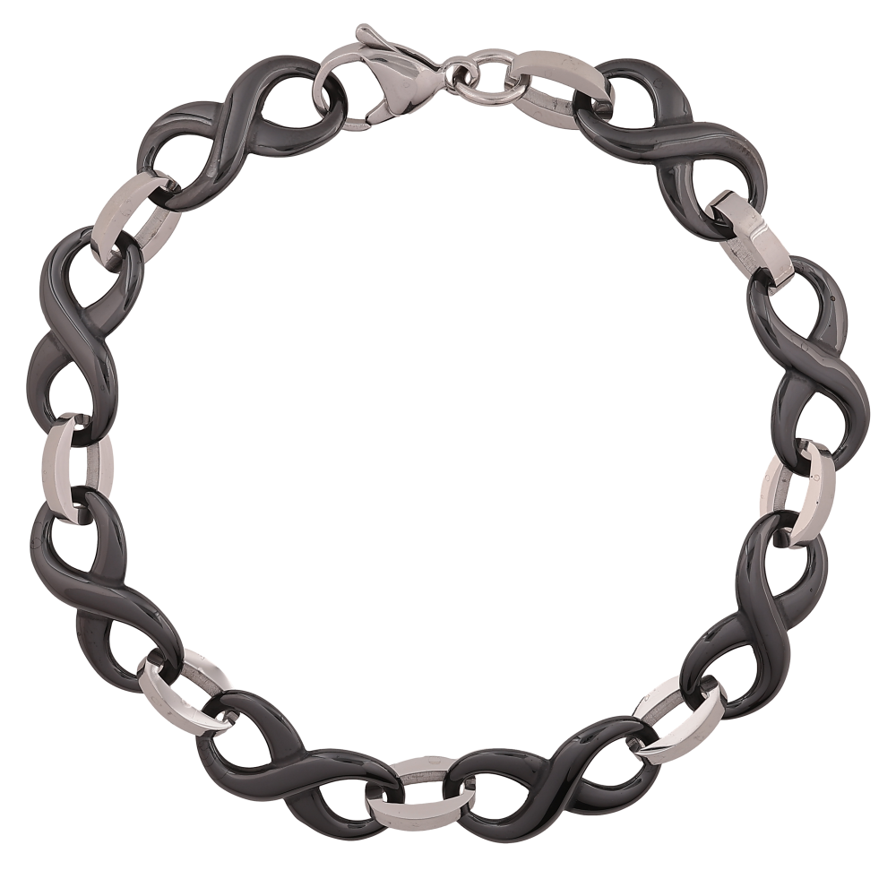 Браслет Xuping ТТМ Stainless Steel колір Родій "Ланки вісімки з чорної кераміки" довжина 21см х 10мм