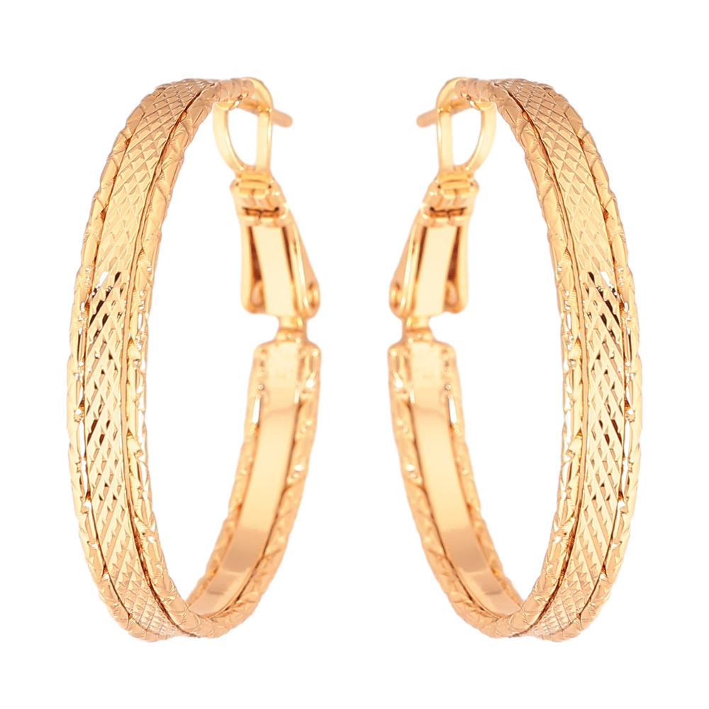Сережки Xuping колір Позолота 18K кільця (конго) "Декоративний візерунок" ø 3см