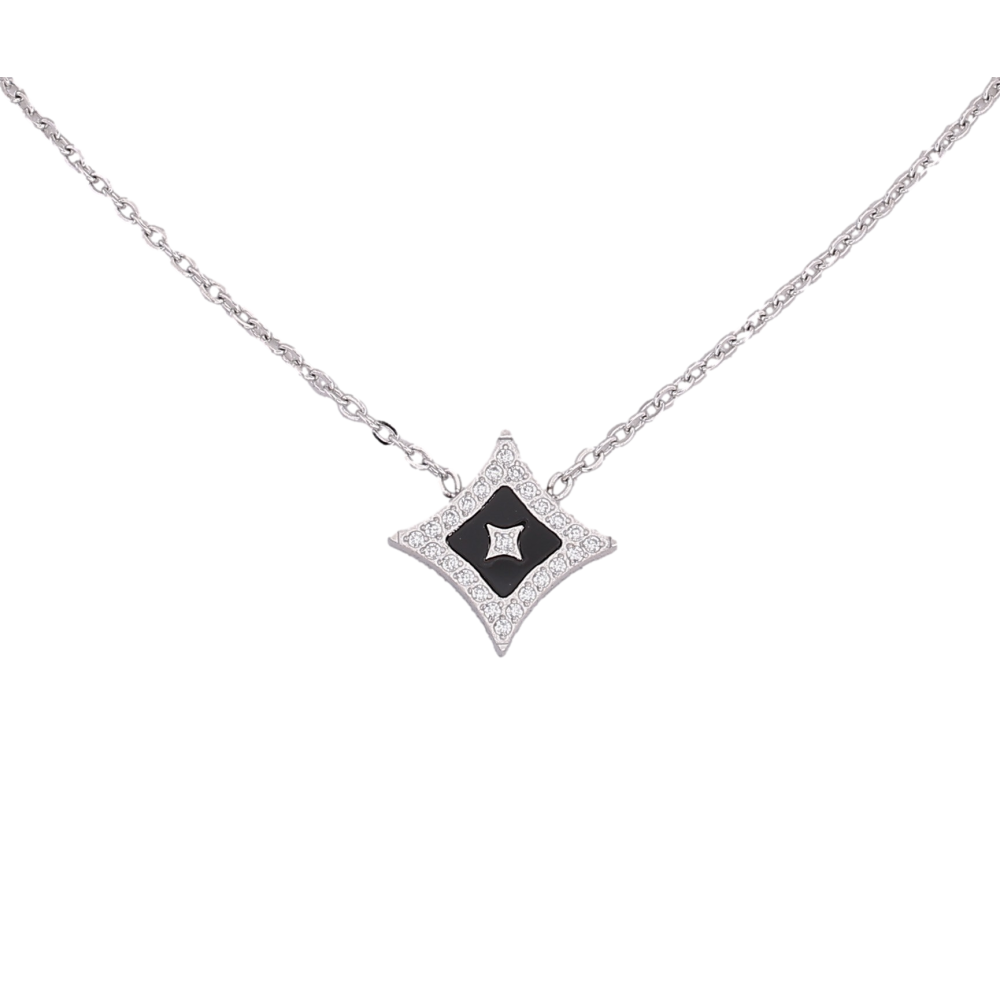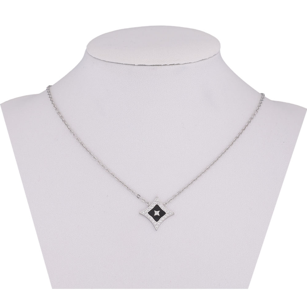 Підвіска на ланцюжку Нержавіюча сталь "Ромб з кристалами та чорною вставкою" довжина 42-47см х 1мм