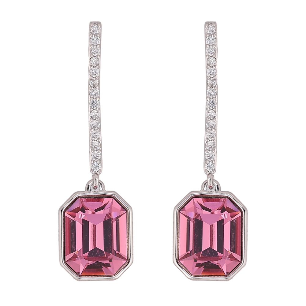 Сережки Xuping колір Родій з кристалами Swarovski пусети "Дорожка з кристалом Rose"