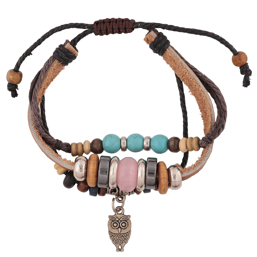 Браслет "Три шнури з намистинами" на затяжці, розмір 15-26см