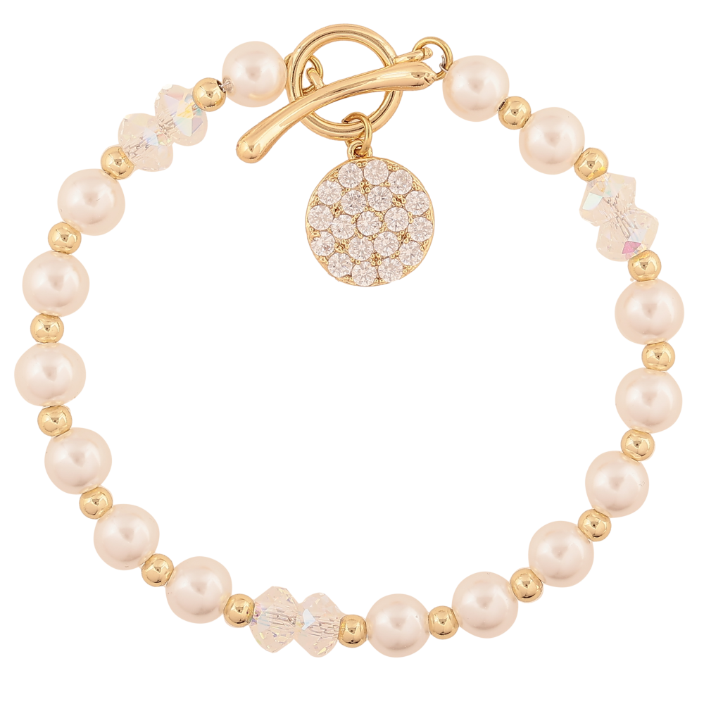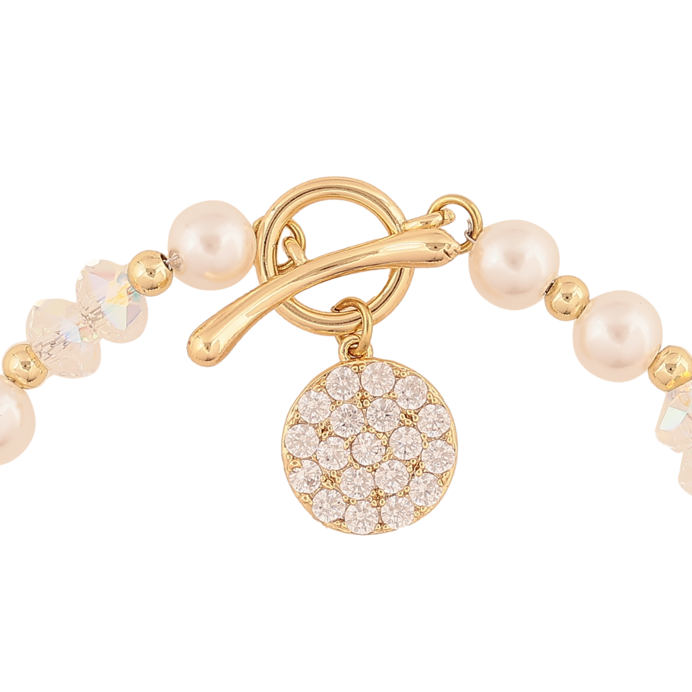 Браслет Xuping колір Позолота 14K "Кристально-перлинні намистини" розмір 17.5см х 3-6мм