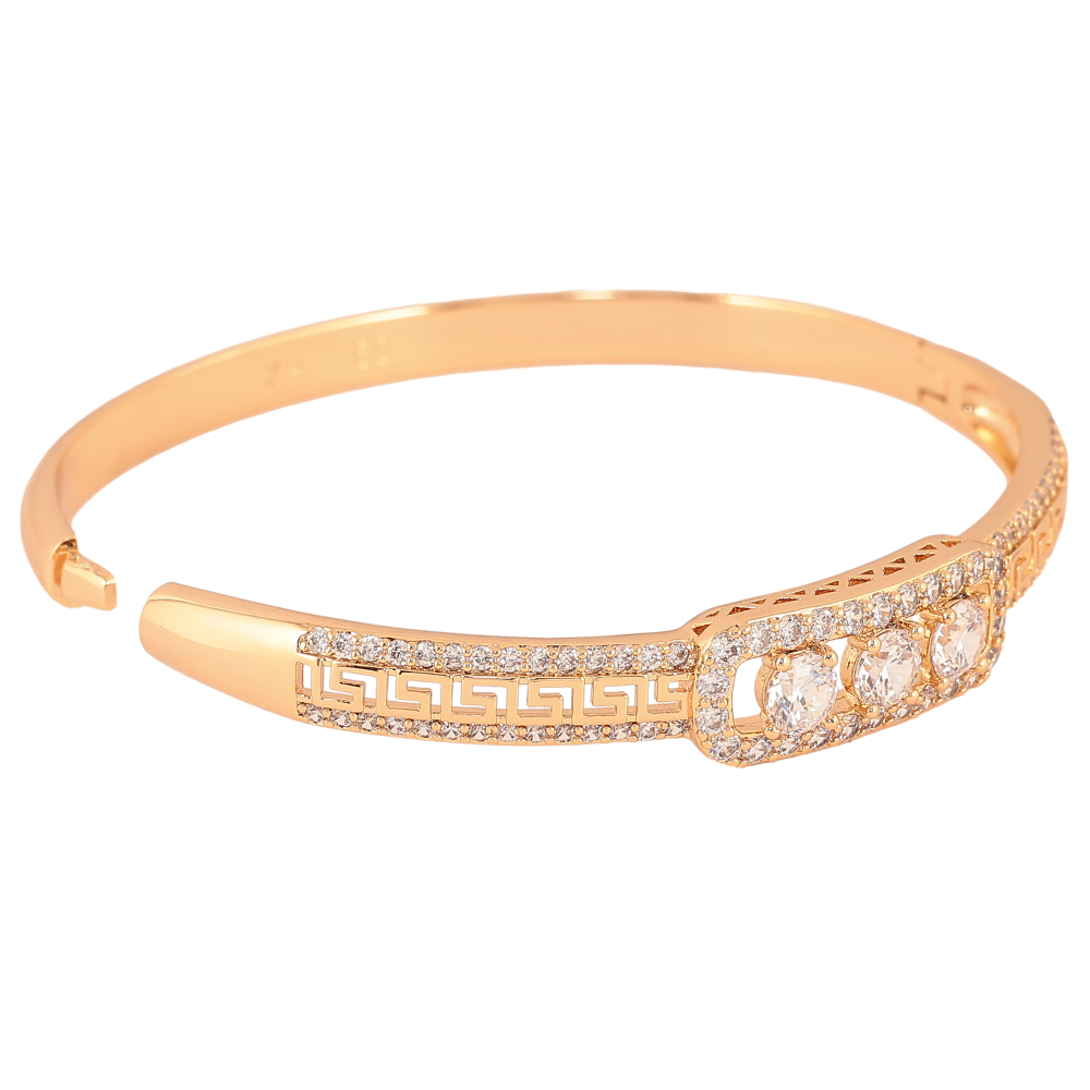Браслет Xuping колір Позолота 18K "Грецький орнамент з доріжками цирконію та вставкою три кристали" ø 6см