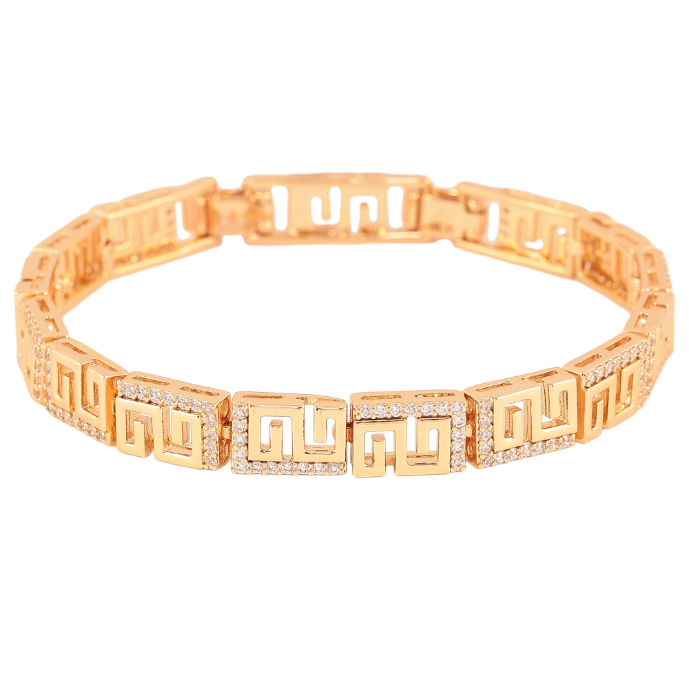 Браслет Xuping колір Позолота 18К "Грецький візерунок з кристалами" розмір з дод. замком 17,19.5см х 8мм