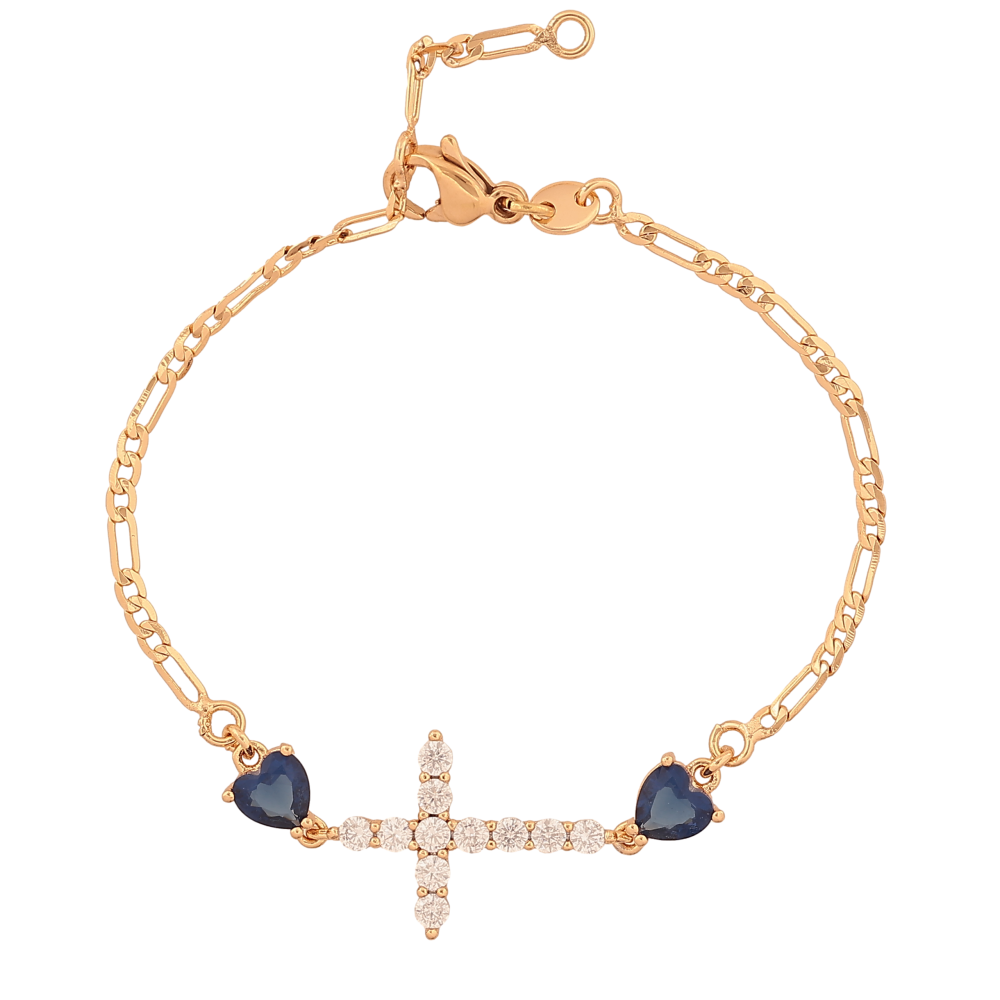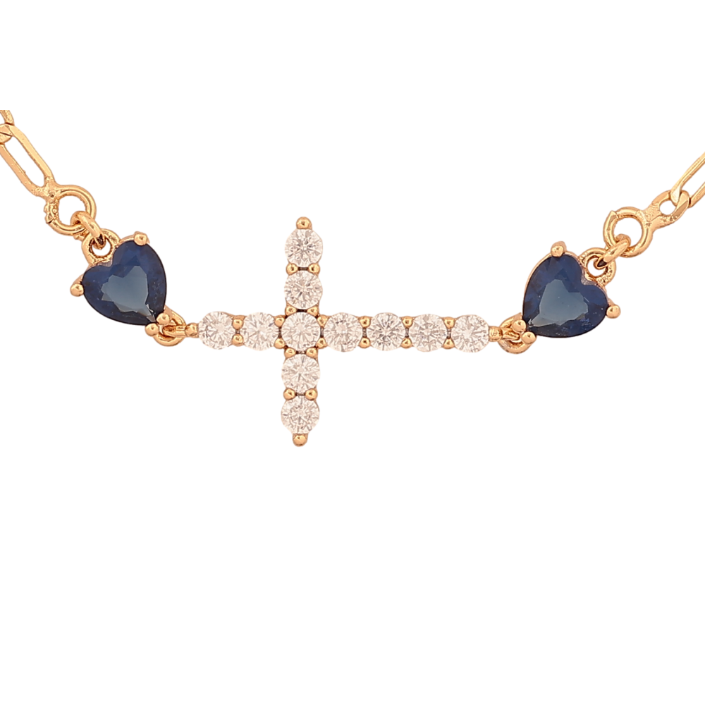 Браслет Xuping колір Позолота 18К "Хрестик з синіми кристальними серцями" розмір з дод. ланкою 15,16.5см х 2-13мм